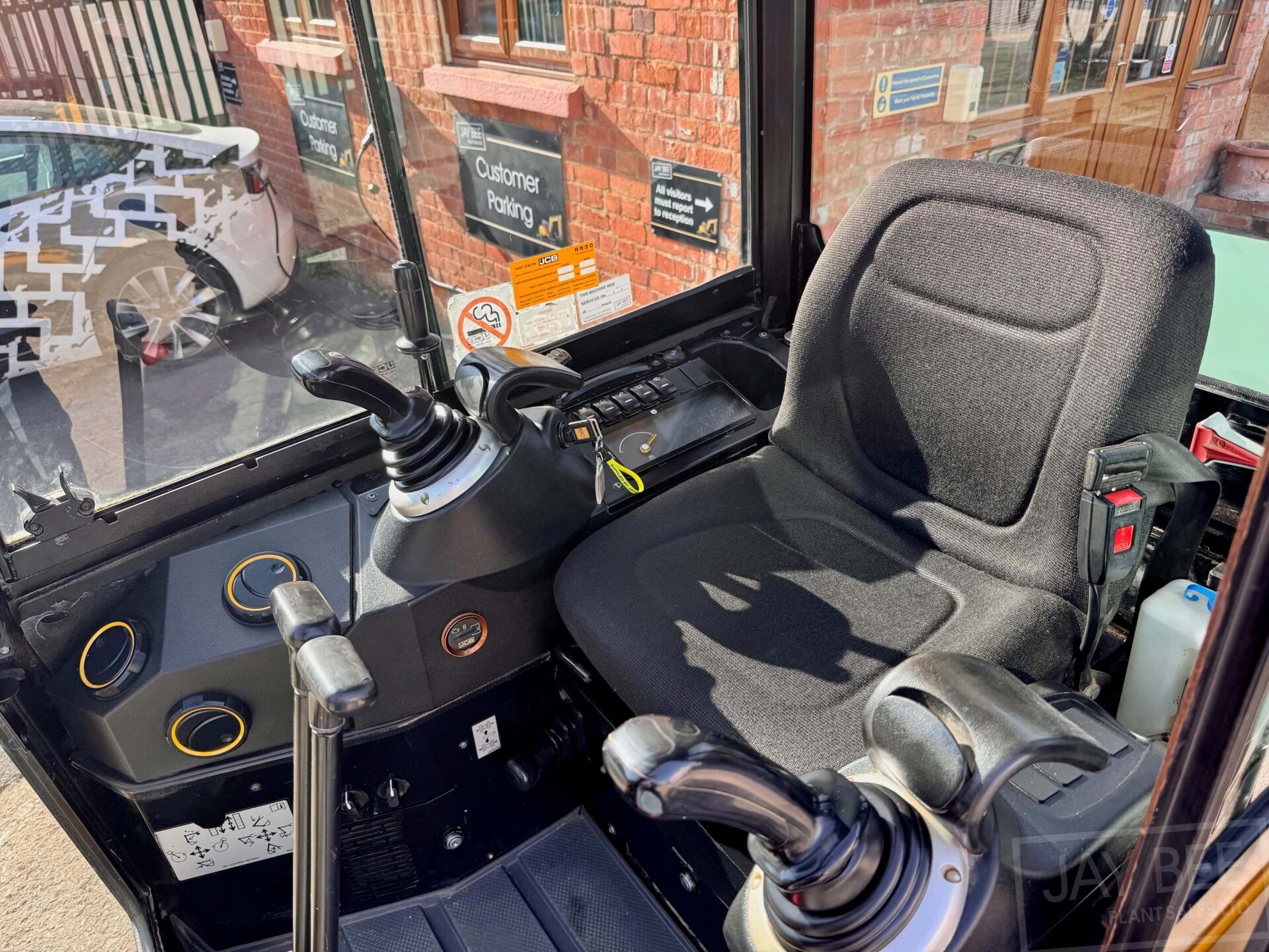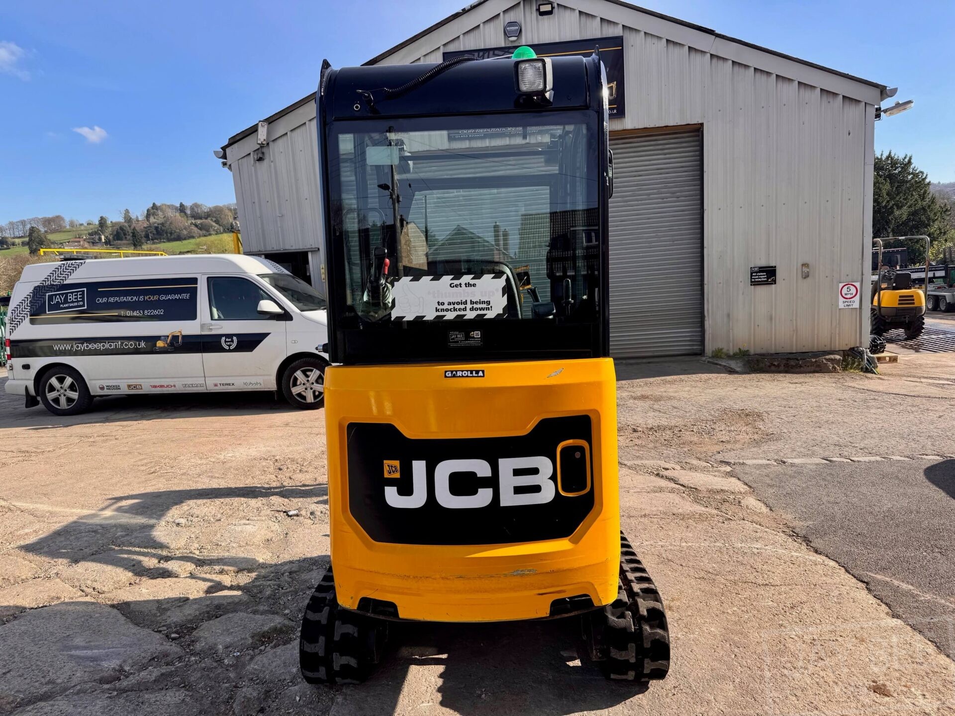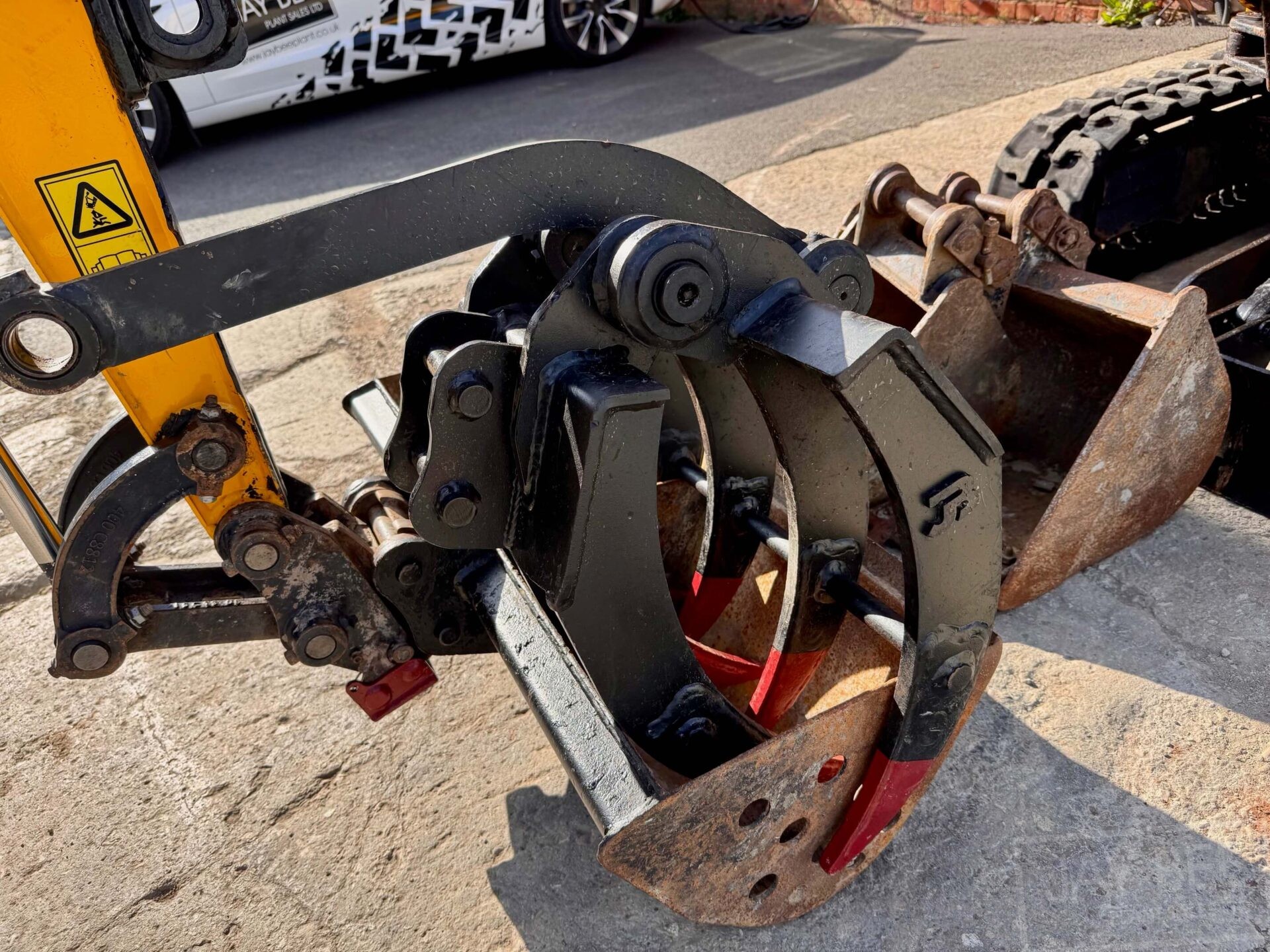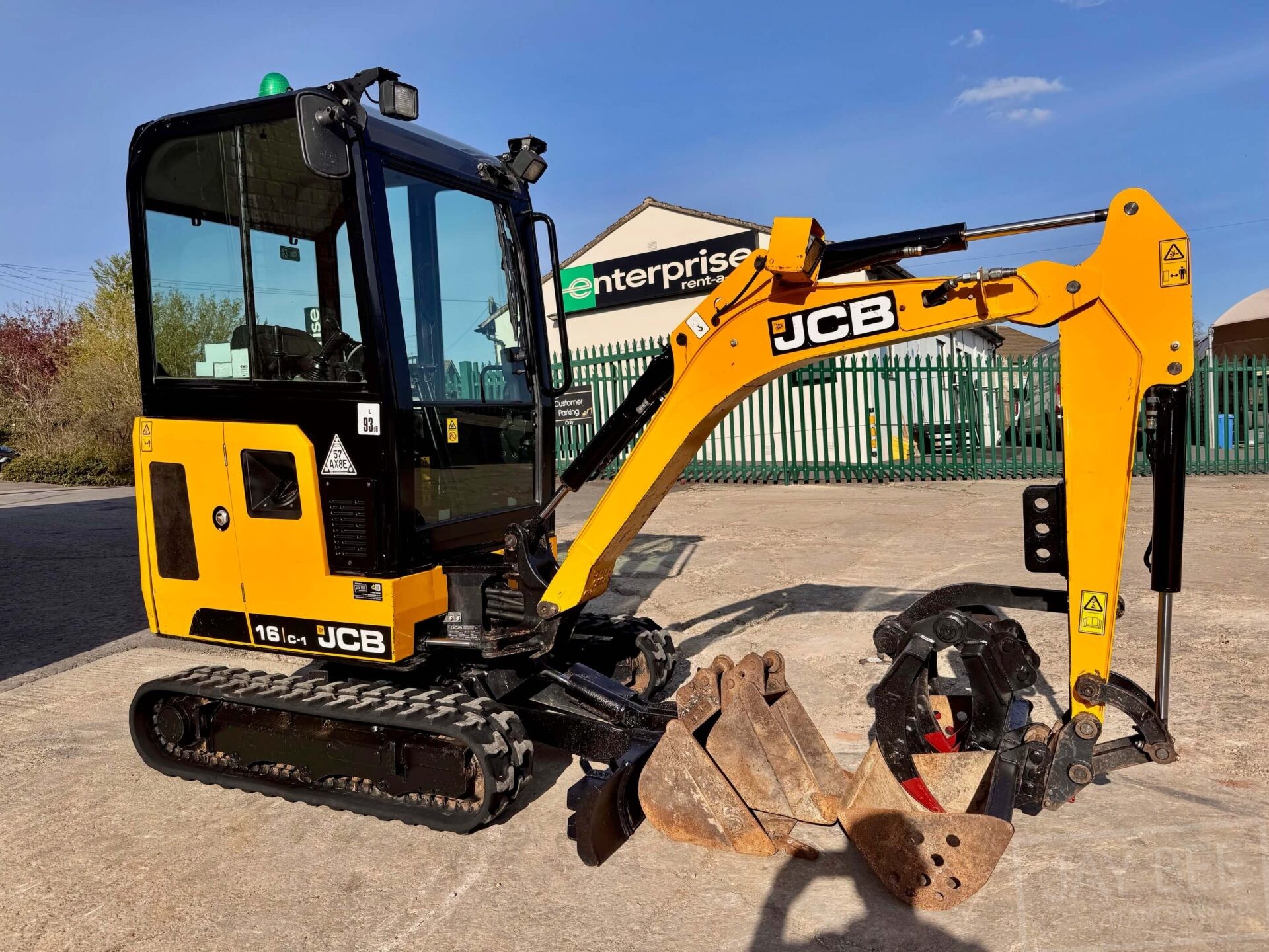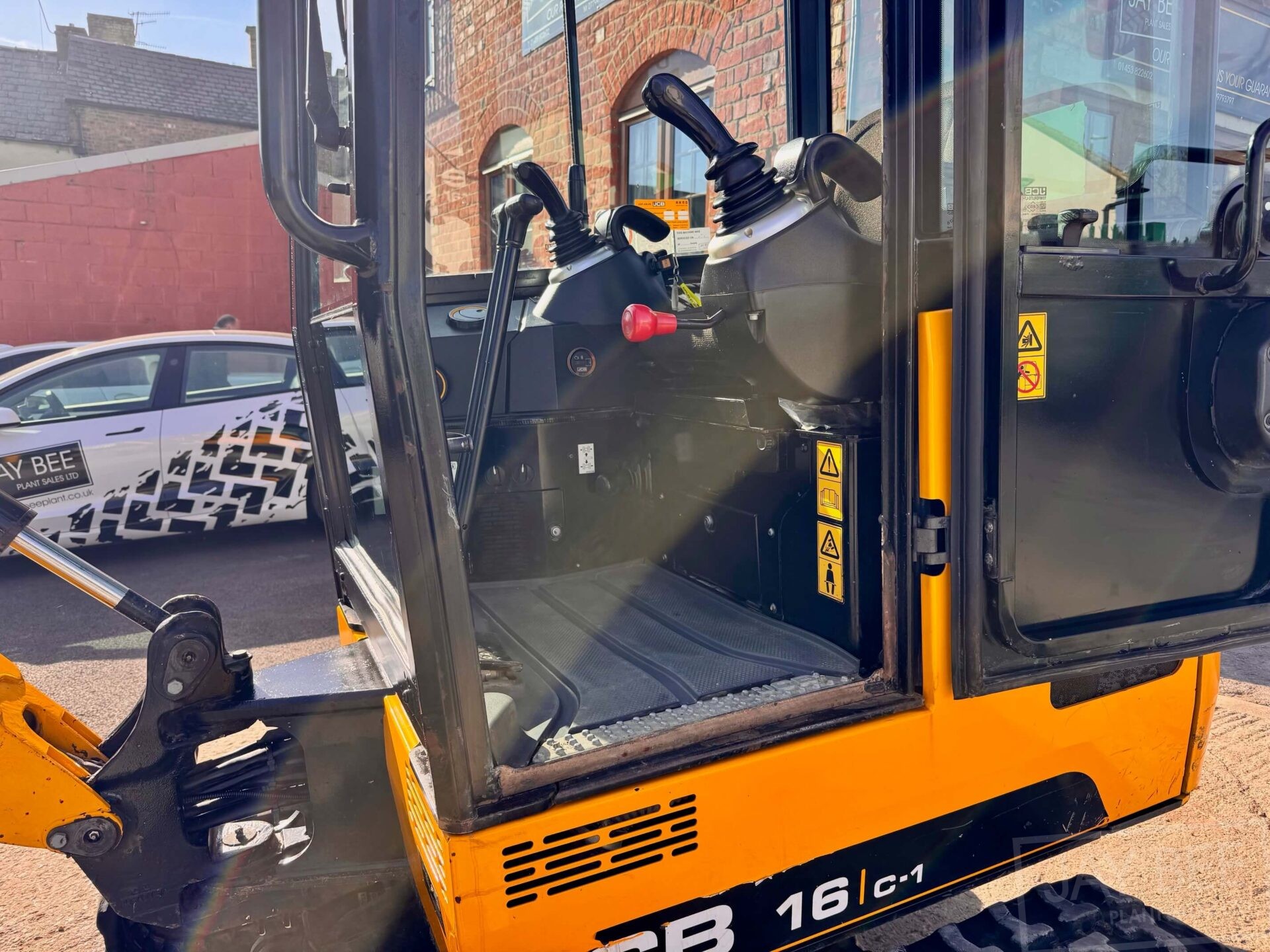 2020 JCB 16C-1 excavator with quick hitch & 3 buckets plus mechanical grapple. Full cab model with heater. 2 speed tracking and expanding undercarriage.
