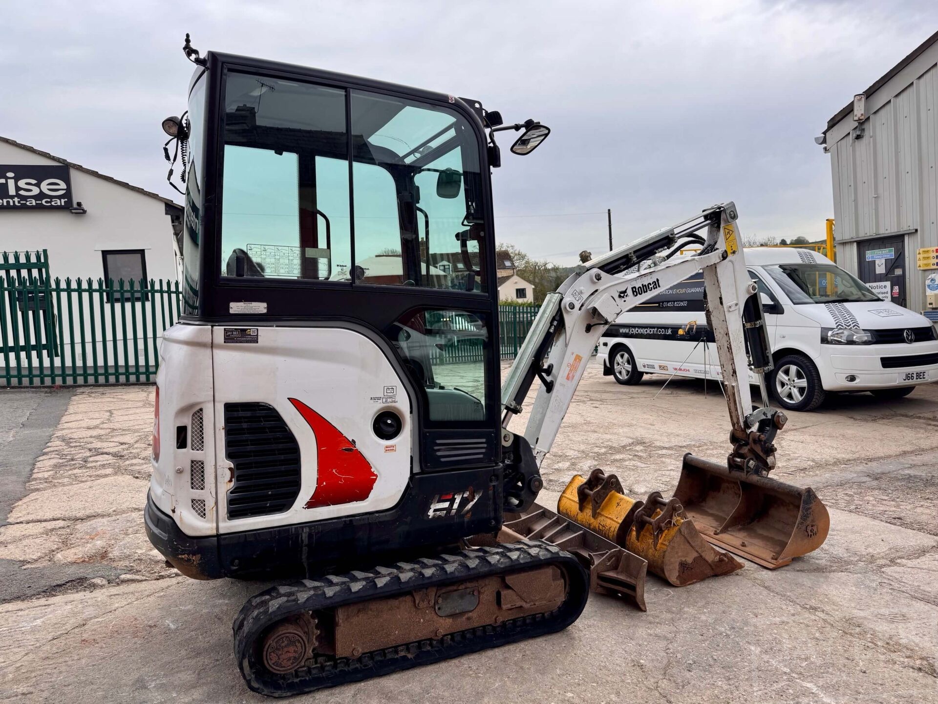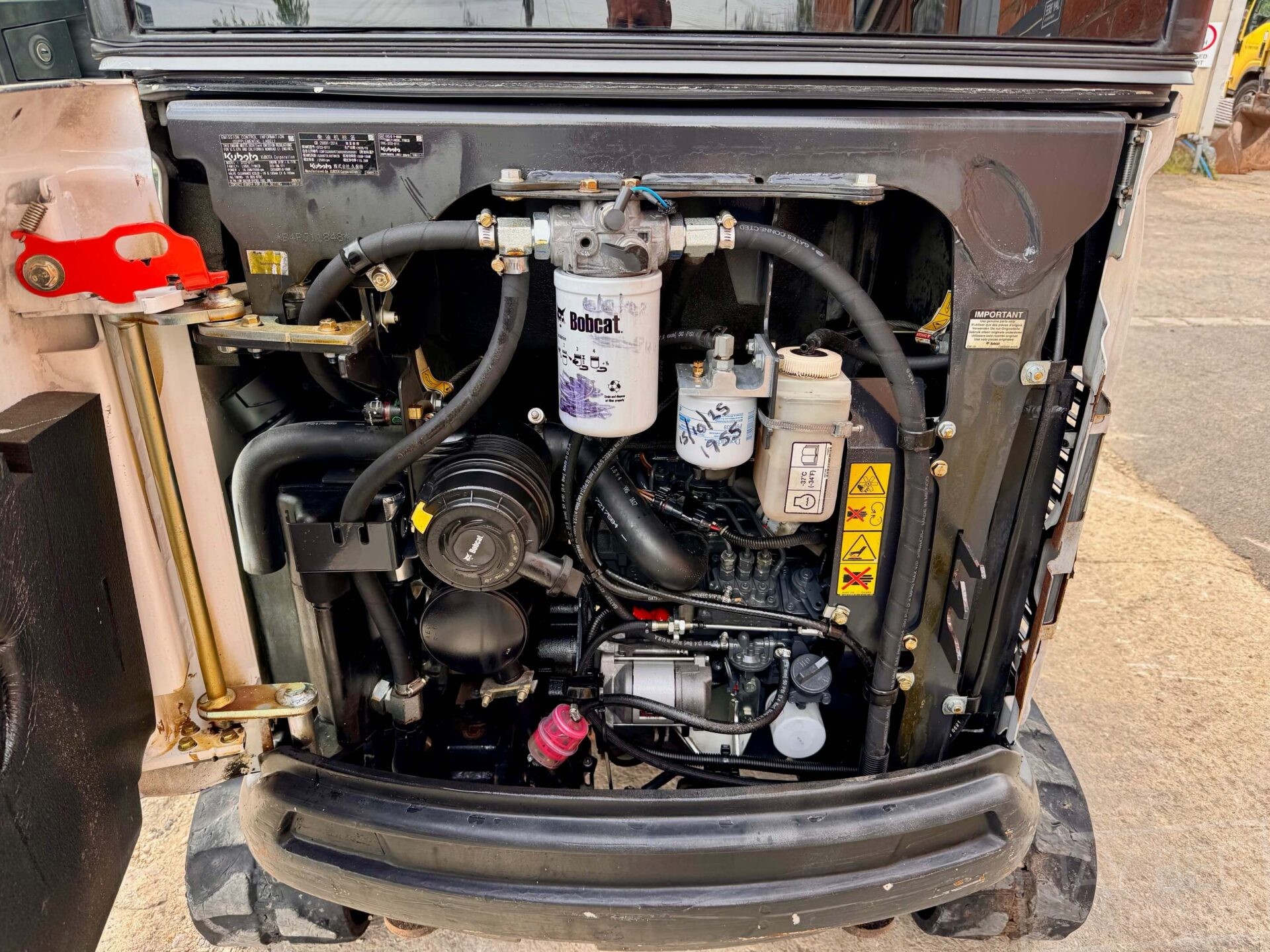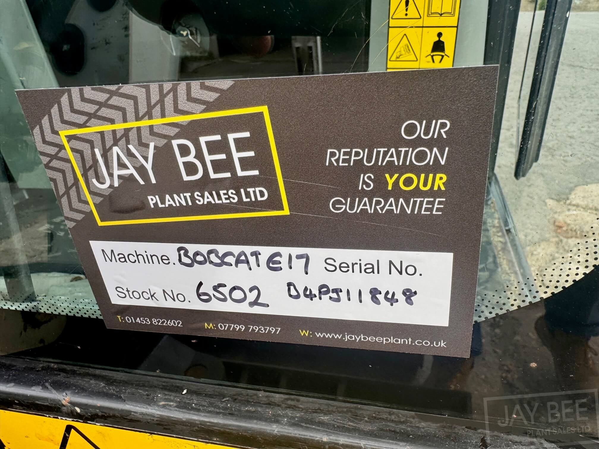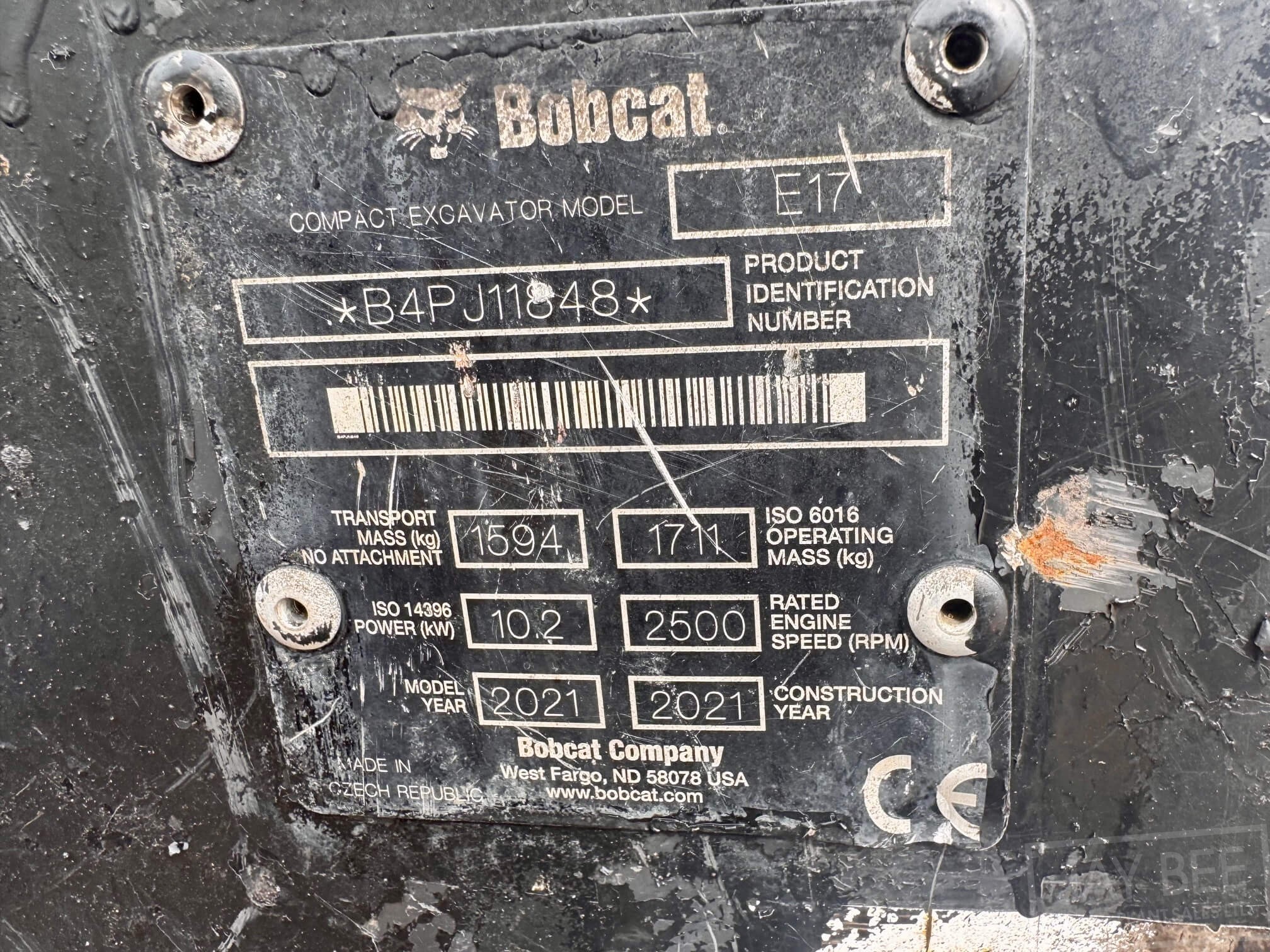 2021 Bobcat E17 excavator, full cab model with heater & radio, quick hitch & 3 bucket, expanding undercarriage & 2 speed tracking, coded start.