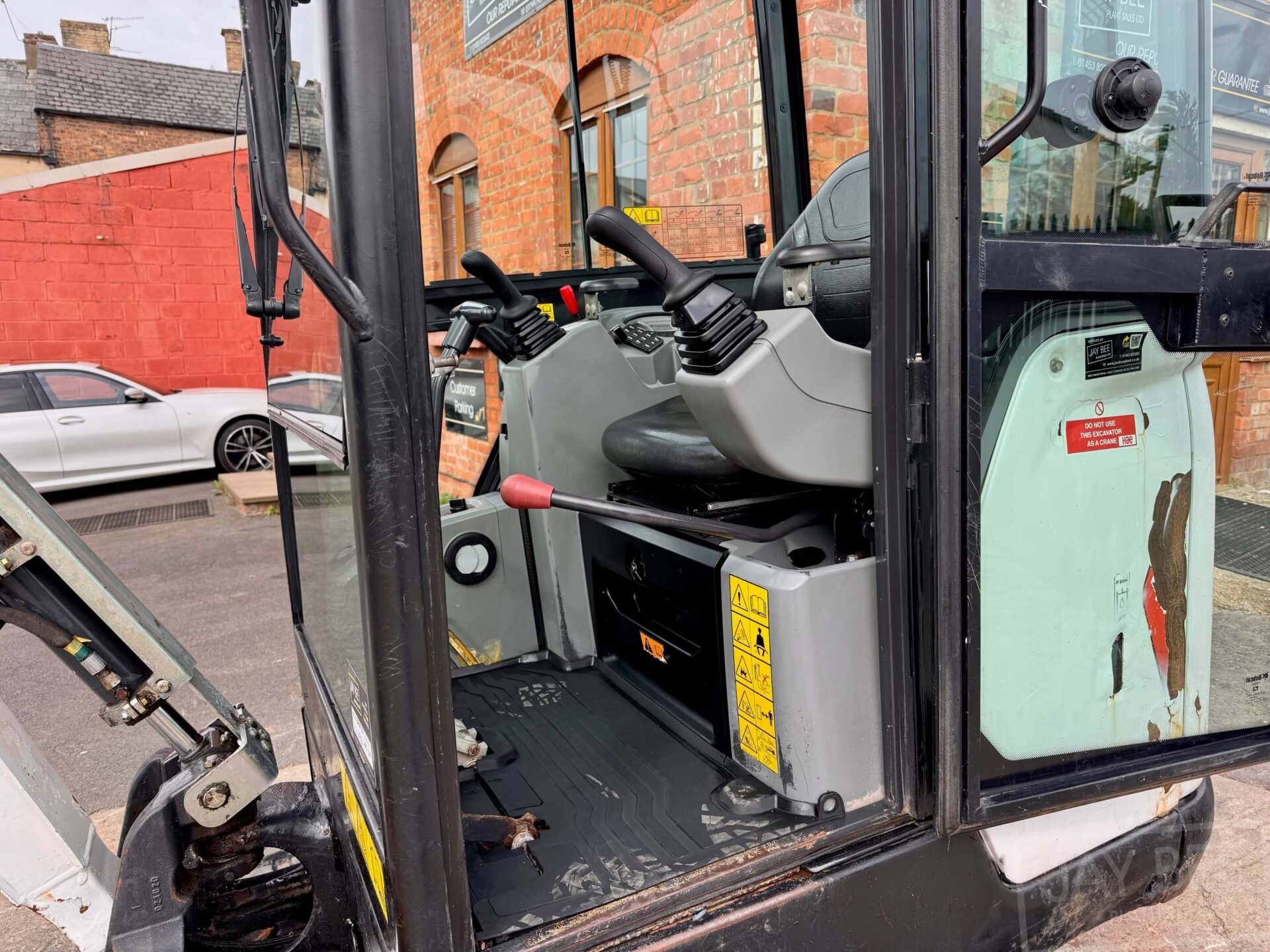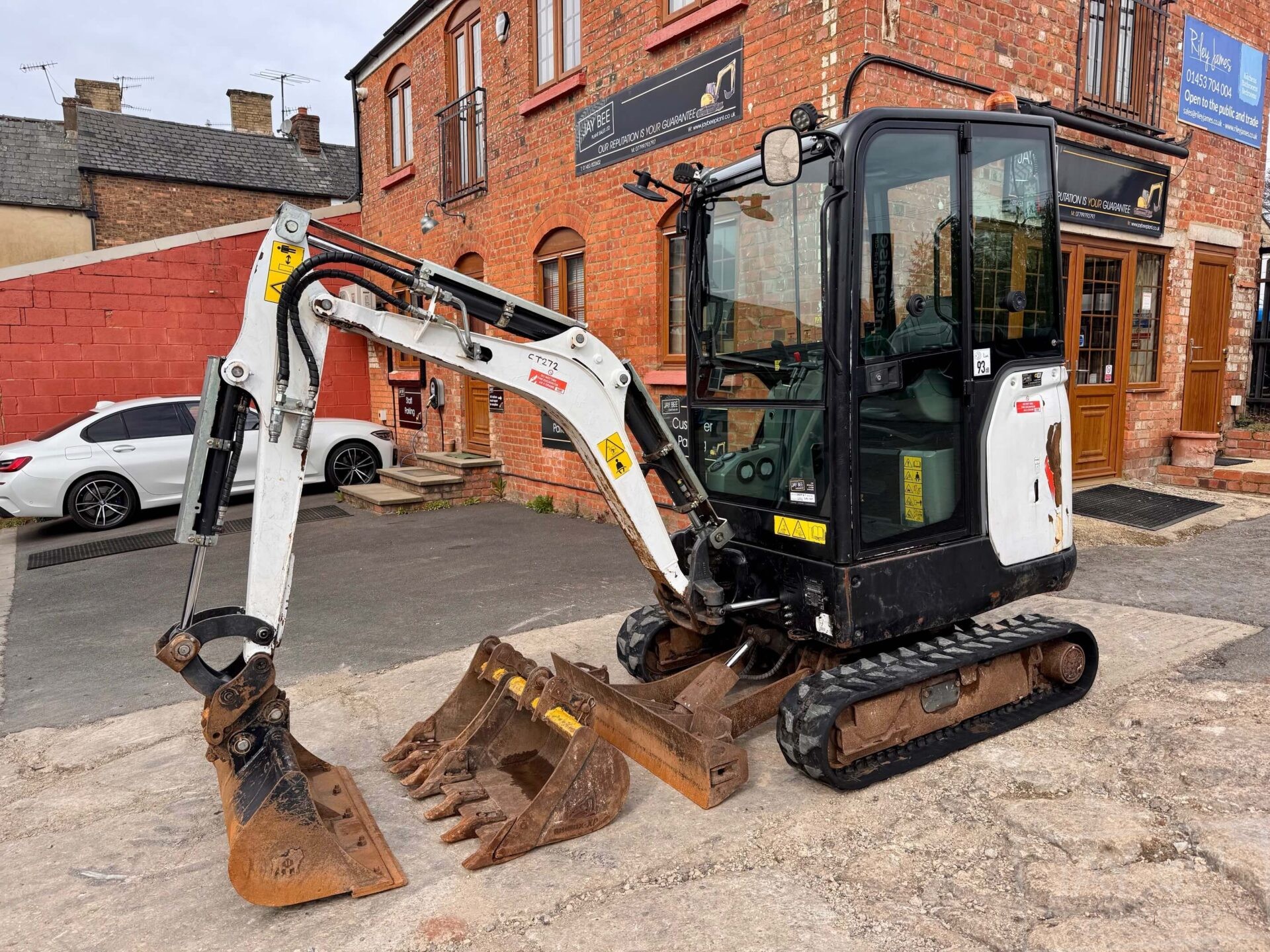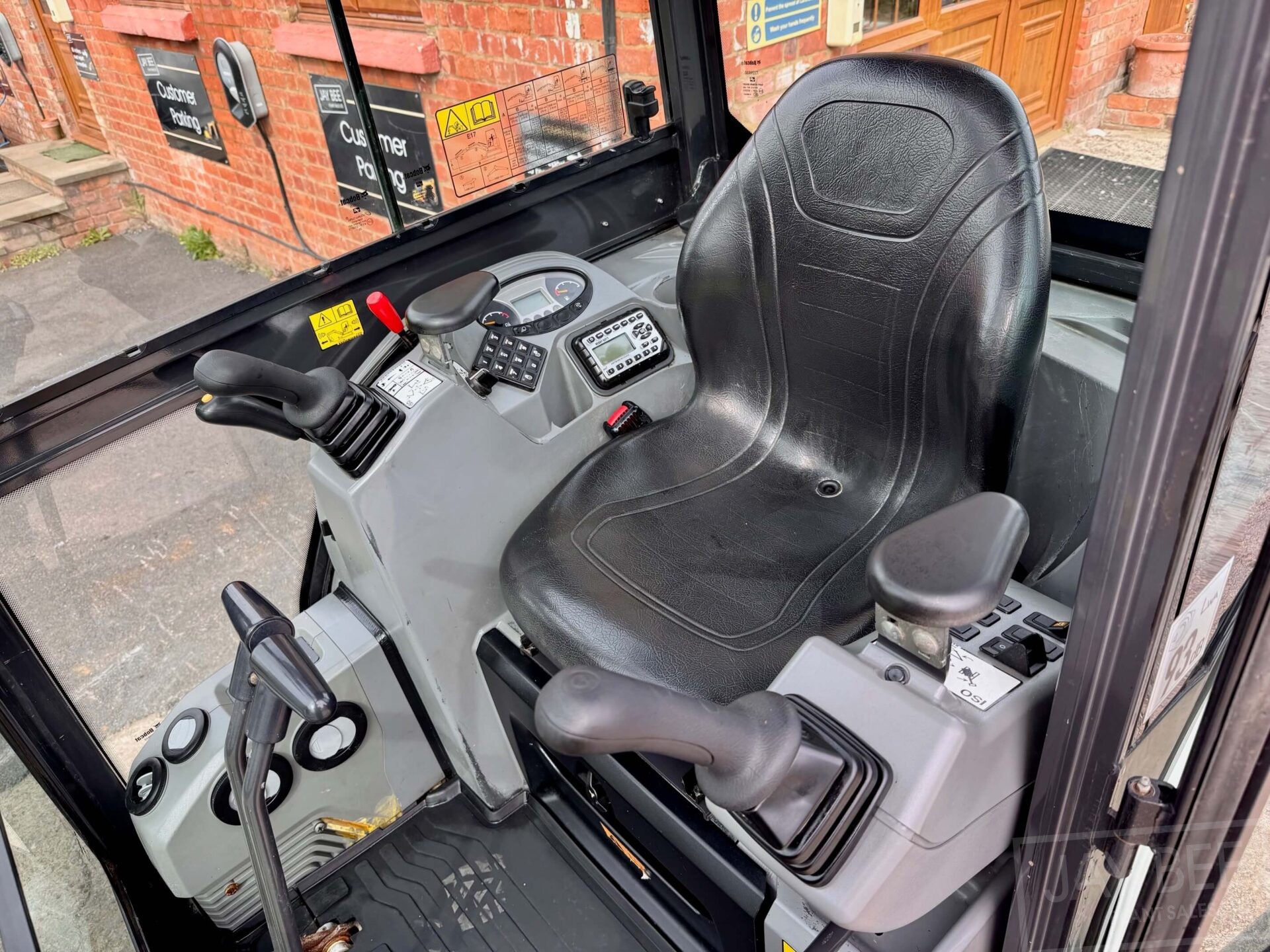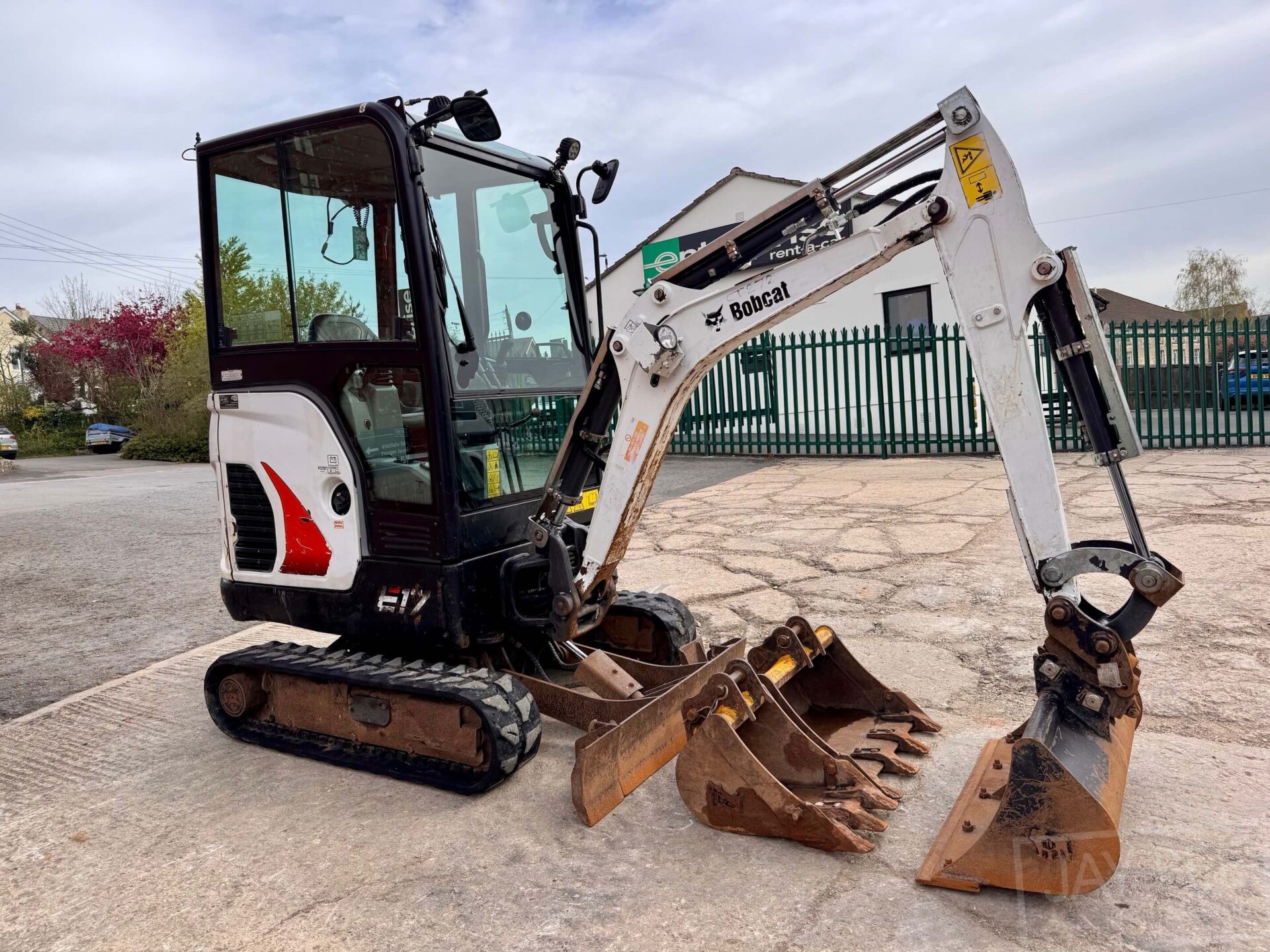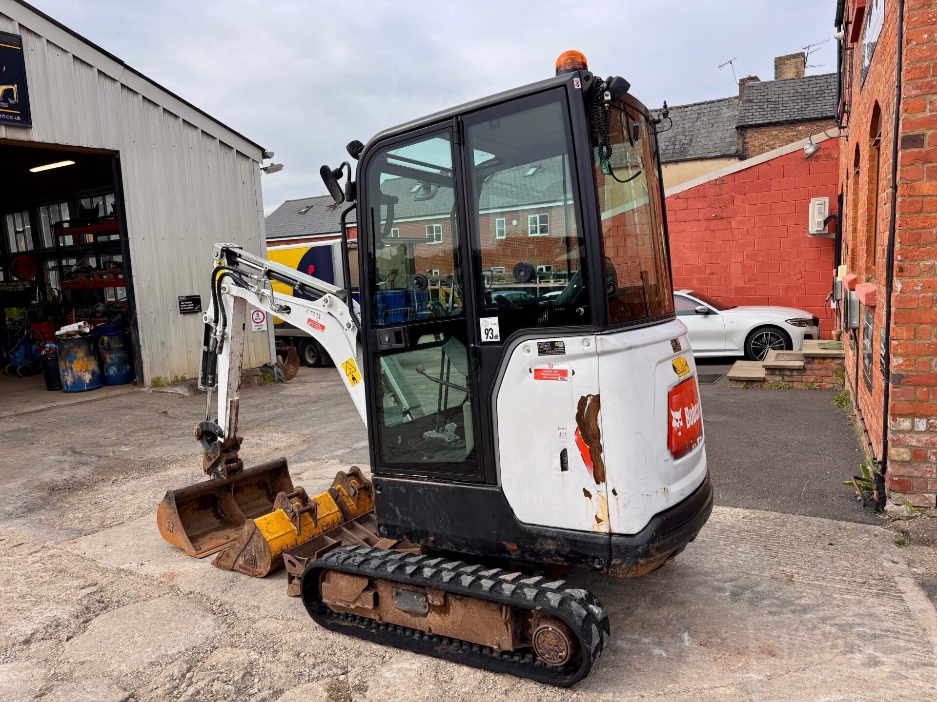 2021 Bobcat E17 excavator, full cab model with heater & radio, quick hitch & 3 bucket, expanding undercarriage & 2 speed tracking, coded start.