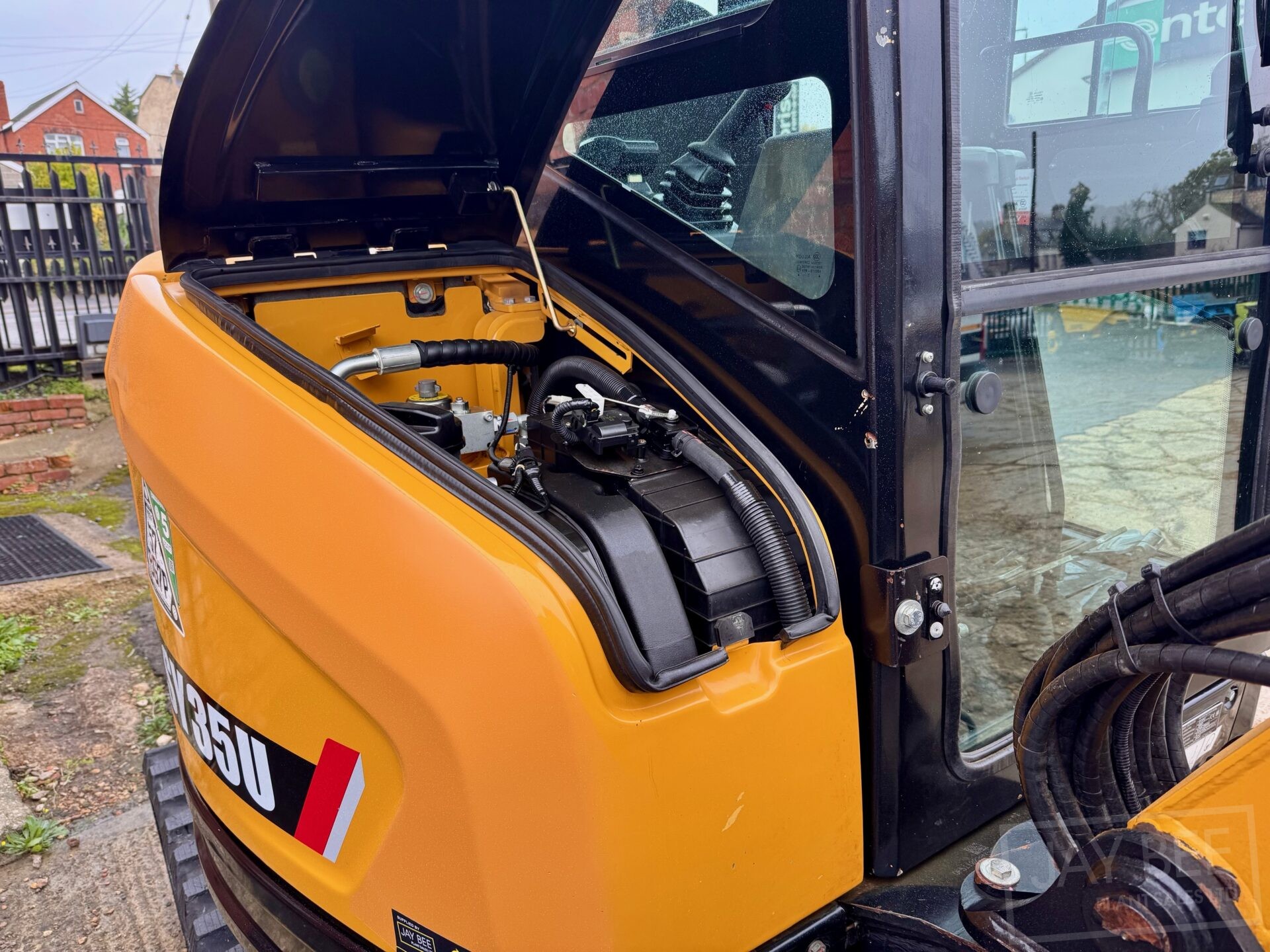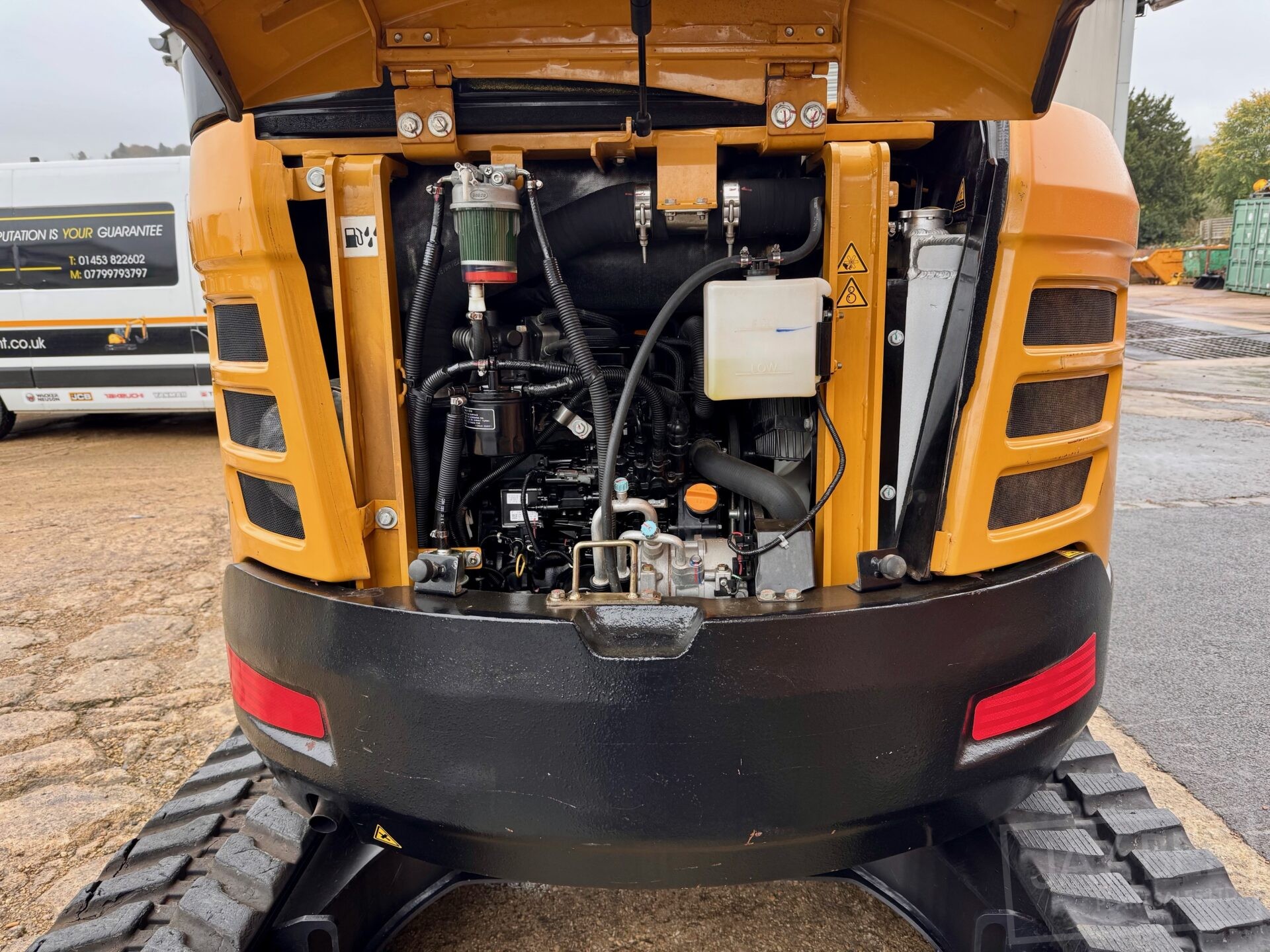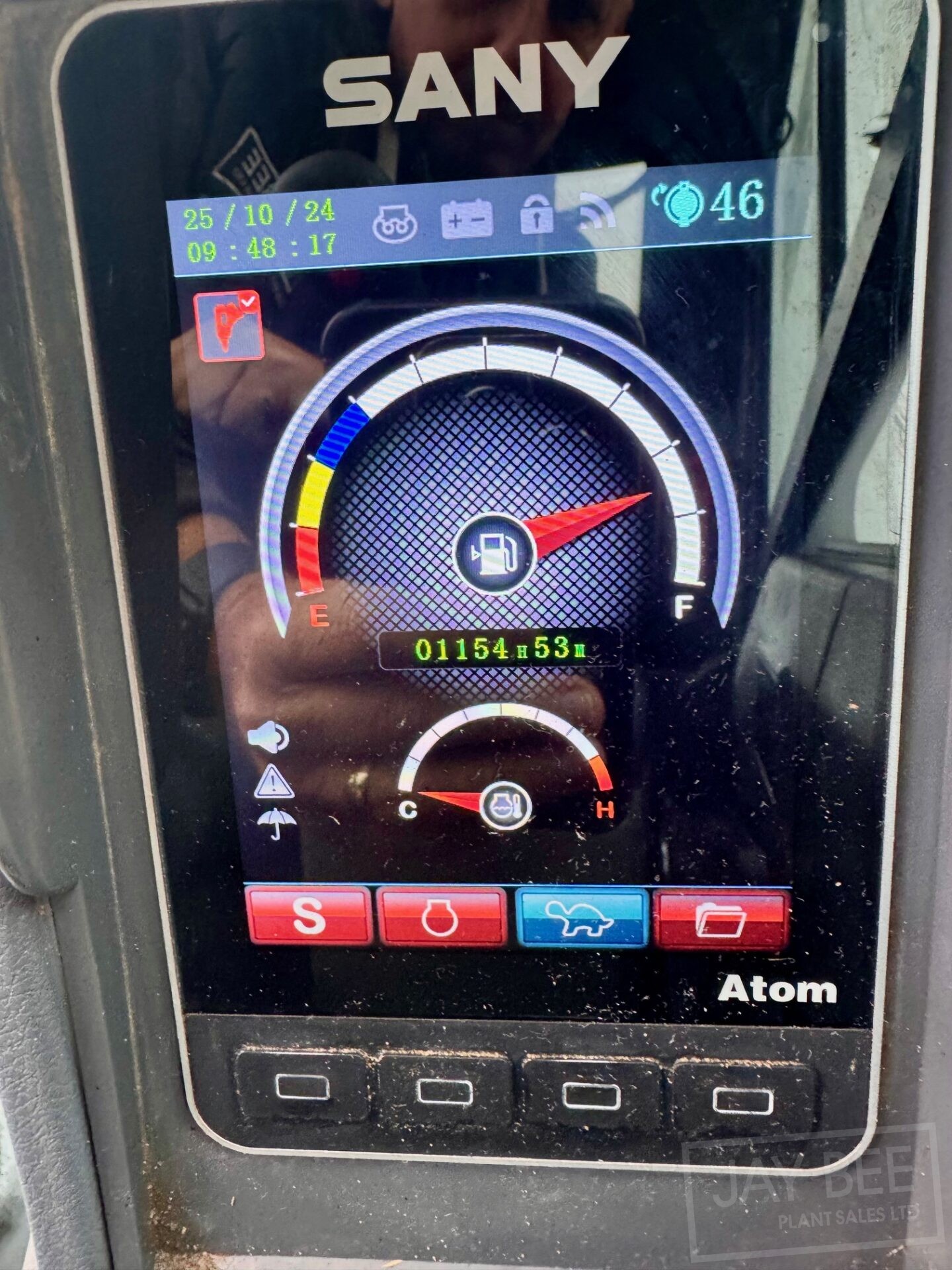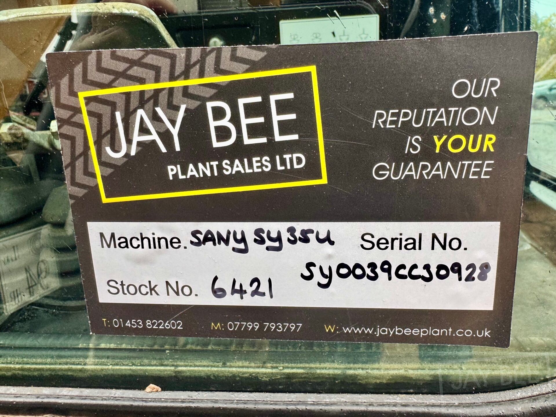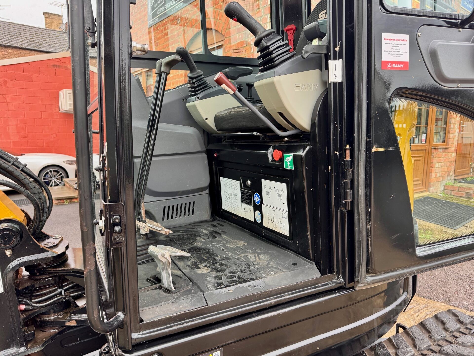2022 Sany SY35U excavator with hydraulic quick hitch & 3 buckets, zero tail swing with auto idle, air con and piped to take rotating grab.