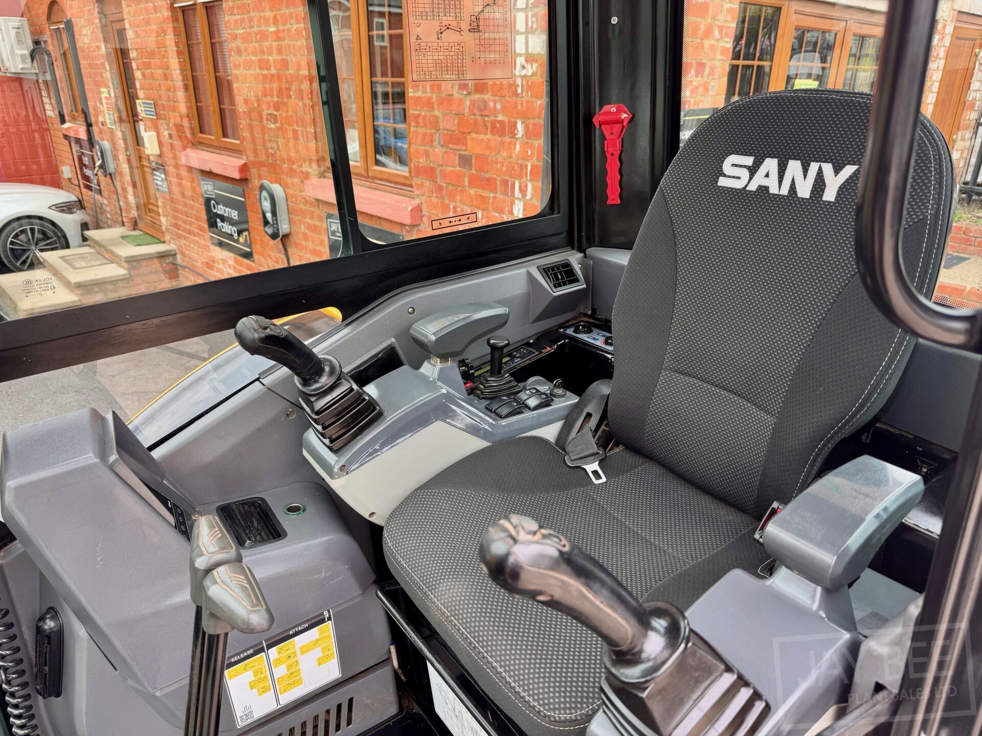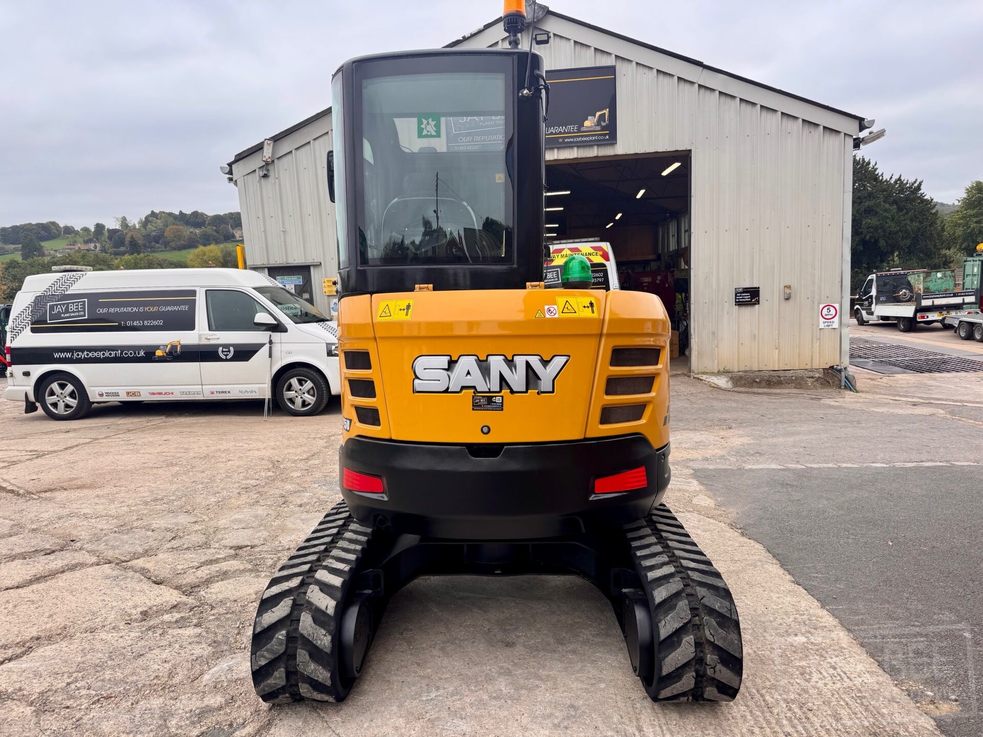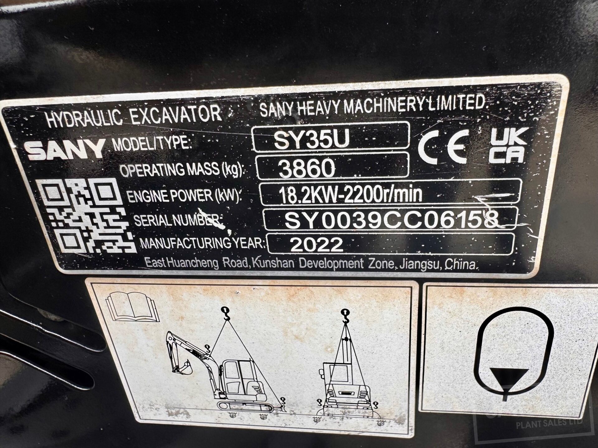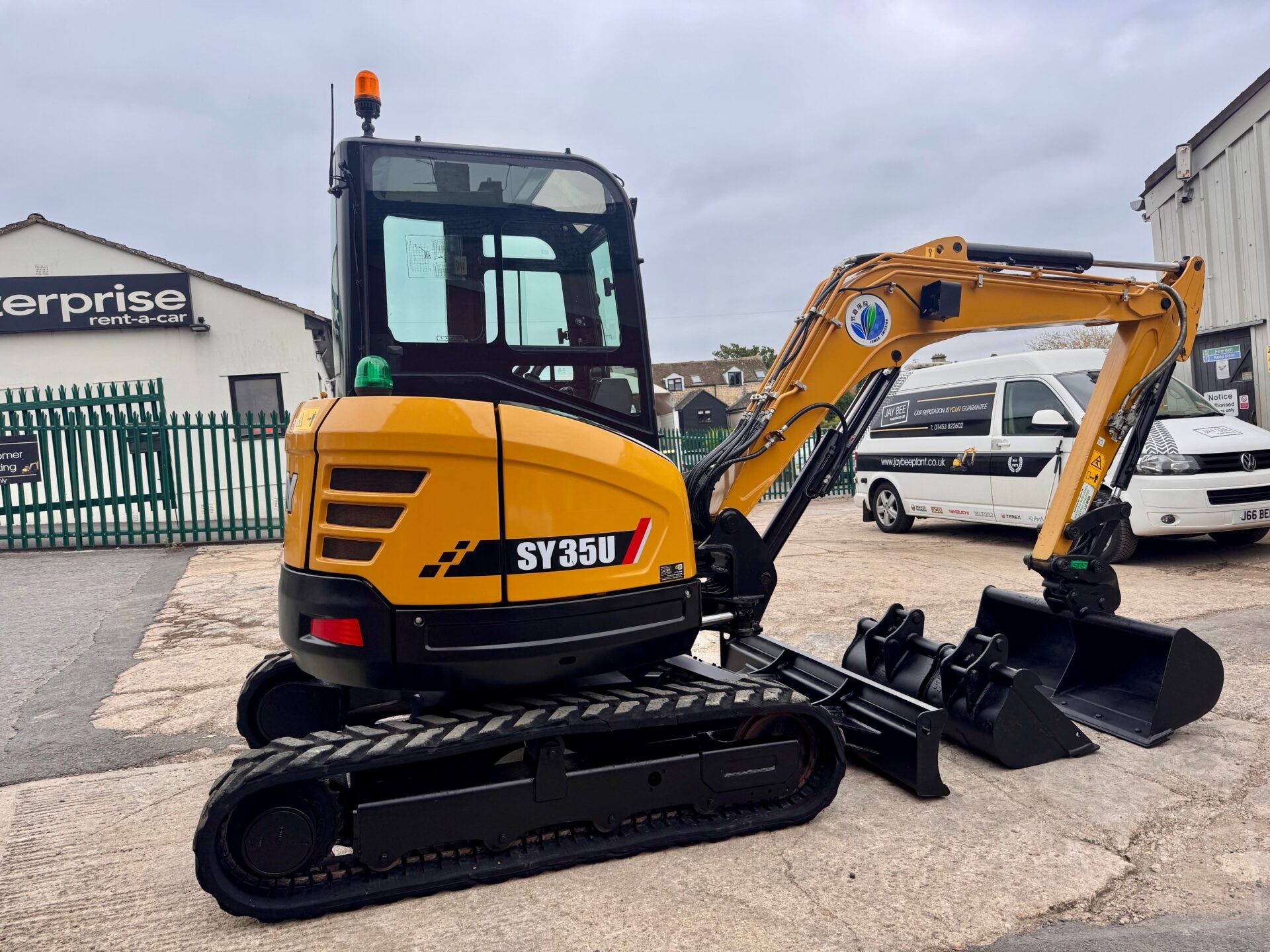 2022 Sany SY35U excavator with hydraulic quick hitch & 3 buckets, zero tail swing, auto throttle, air con and piped to take rotating grab.