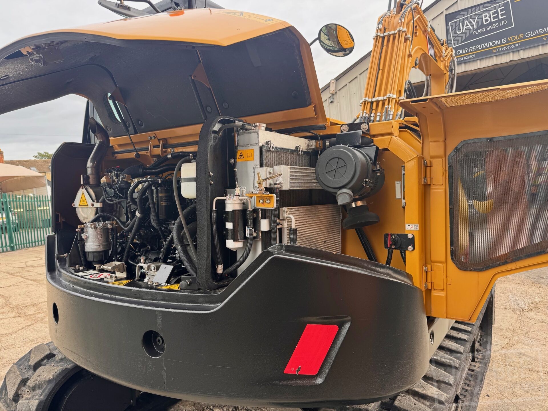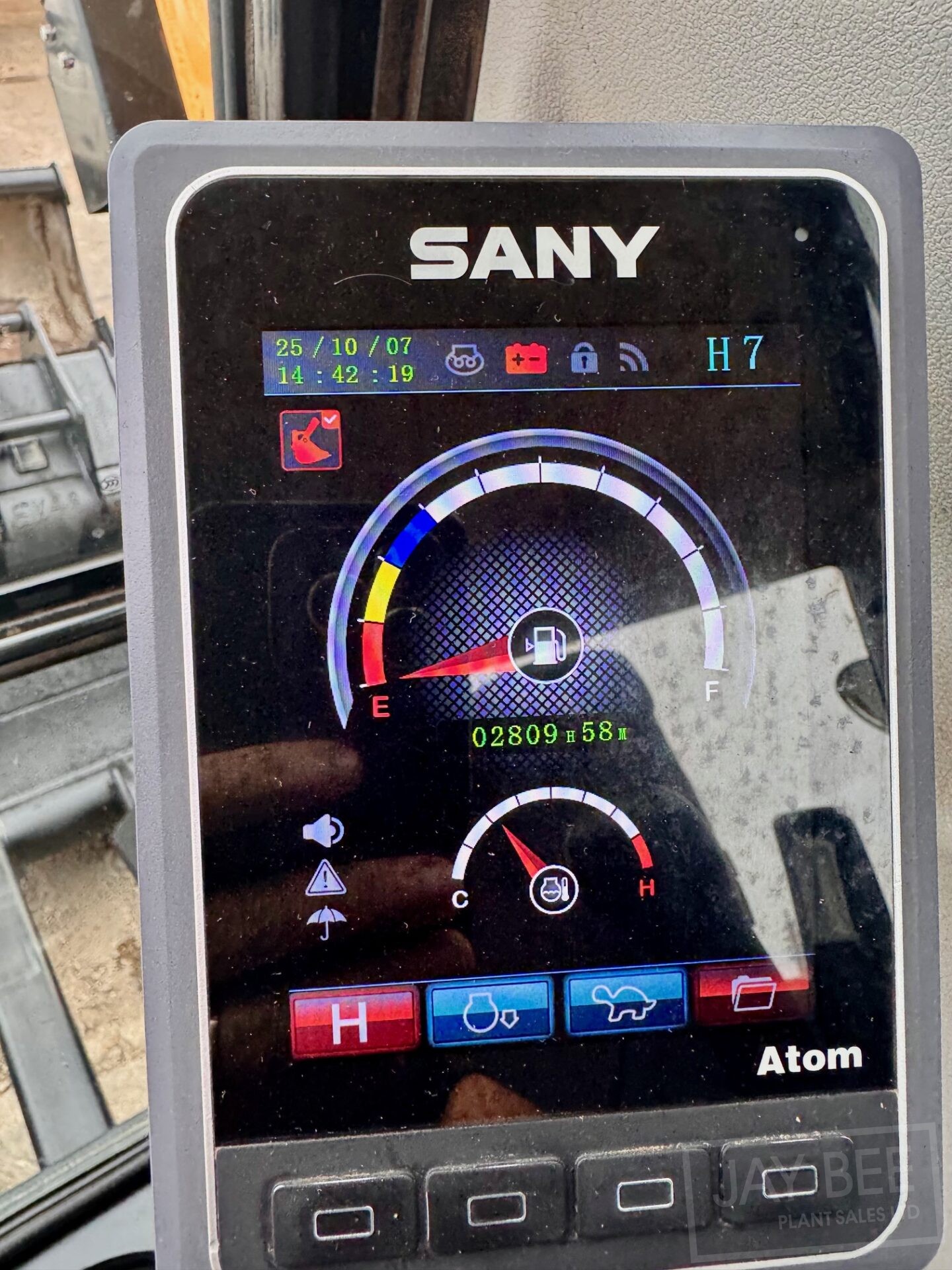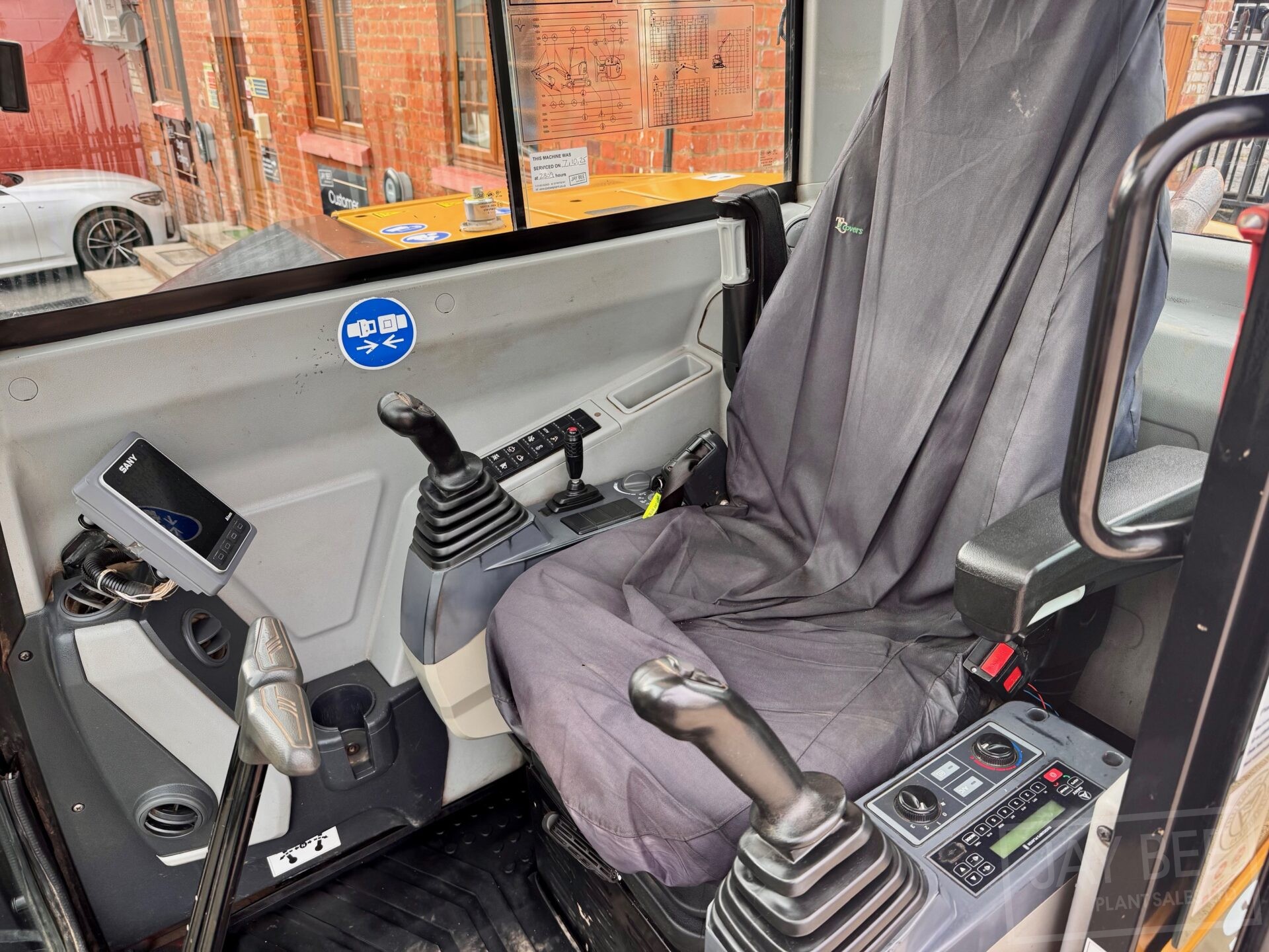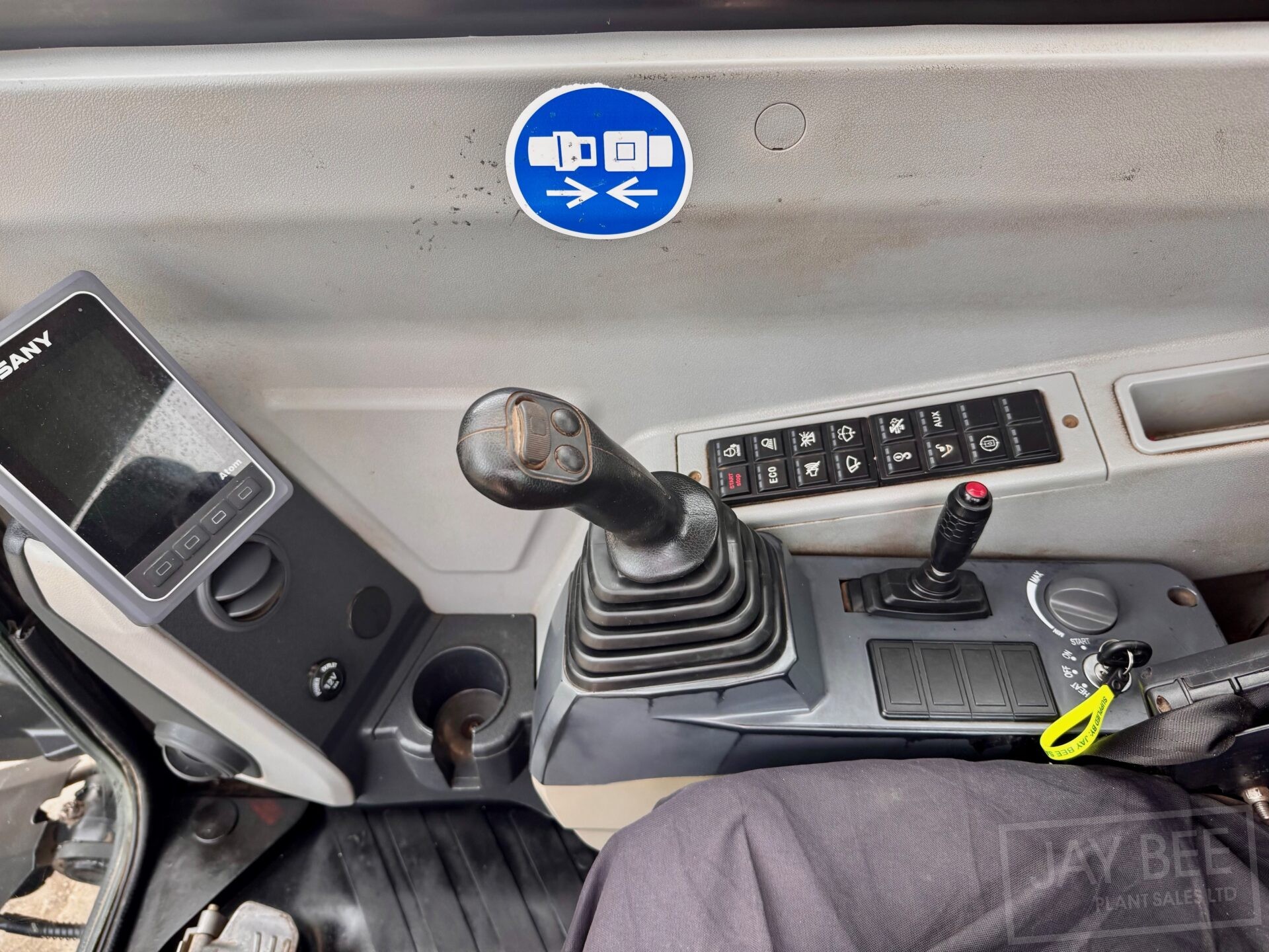 2022 Sany SY80U excavator zero tail swing with hydraulic quick hitch & 3 buckets including a new grading bucket.