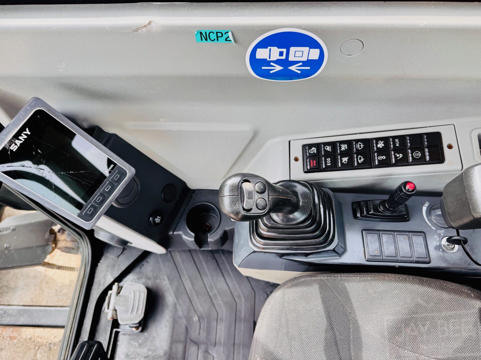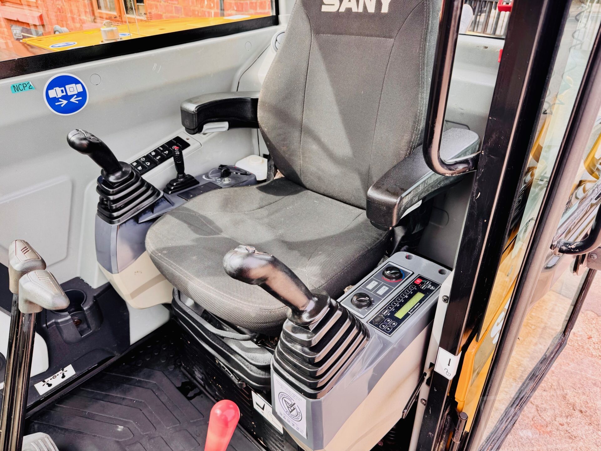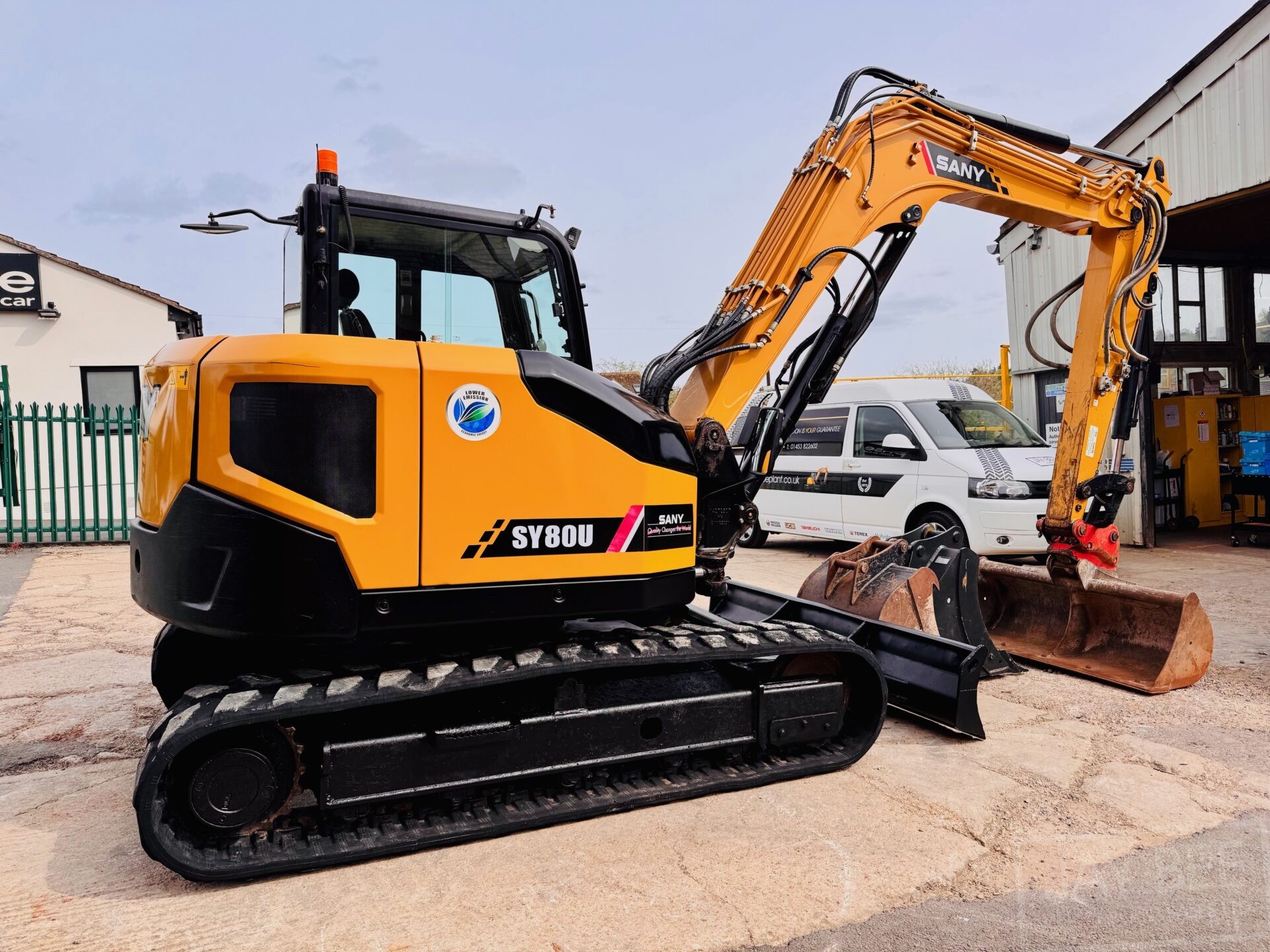 2022 Sany SY80U excavator with hitch & 3 buckets, zero tail swing model piped to take rotating grab, air con.
