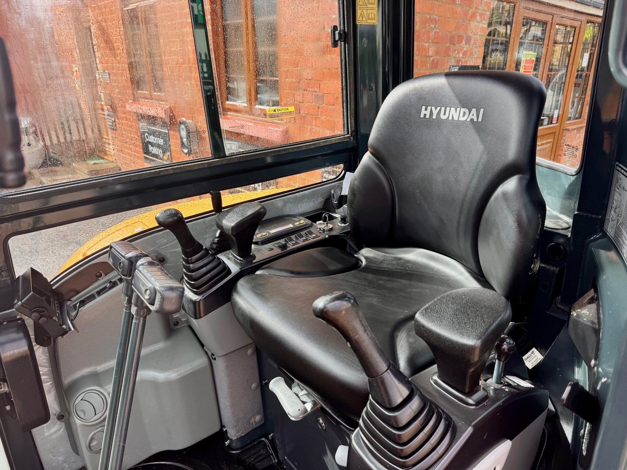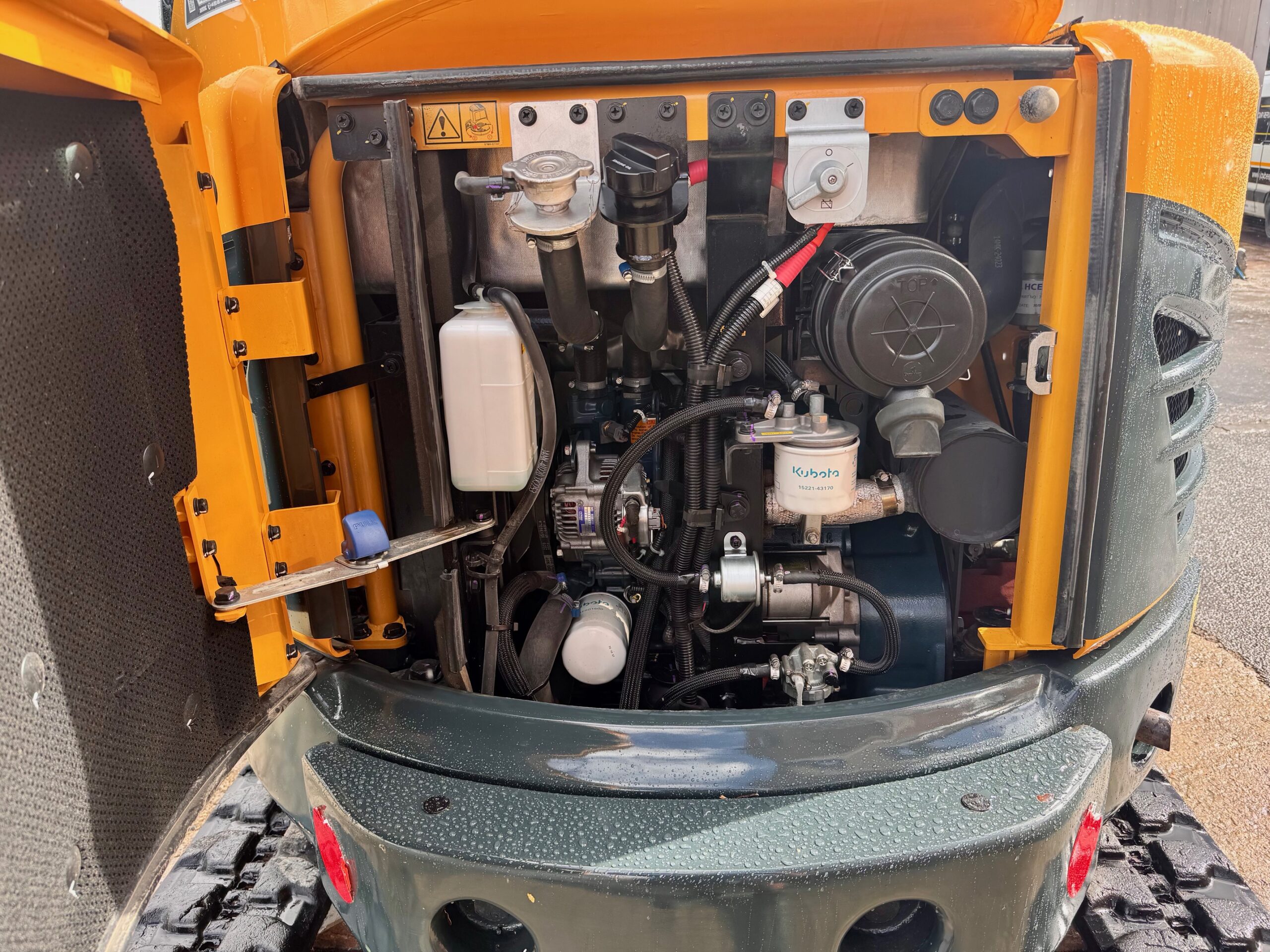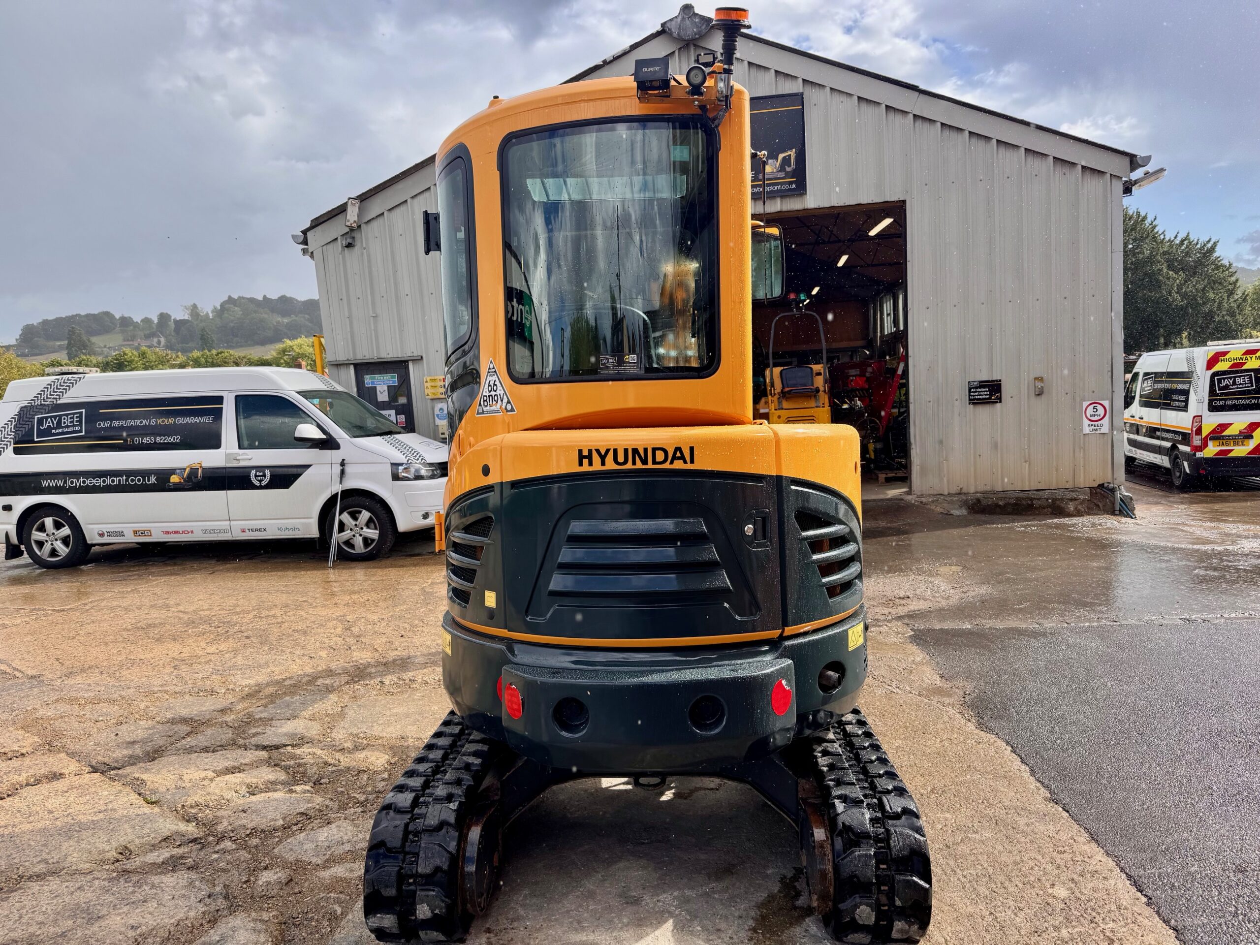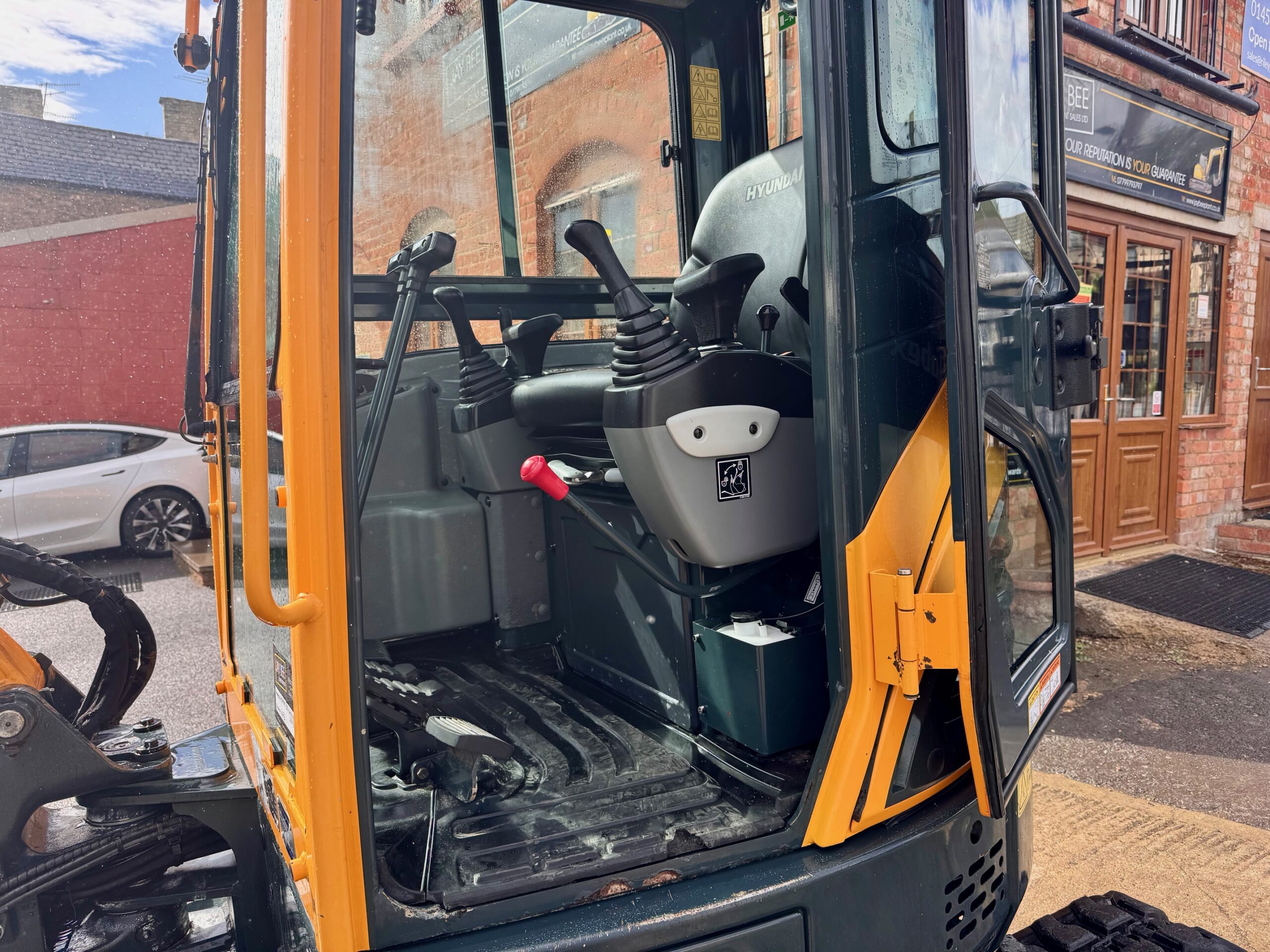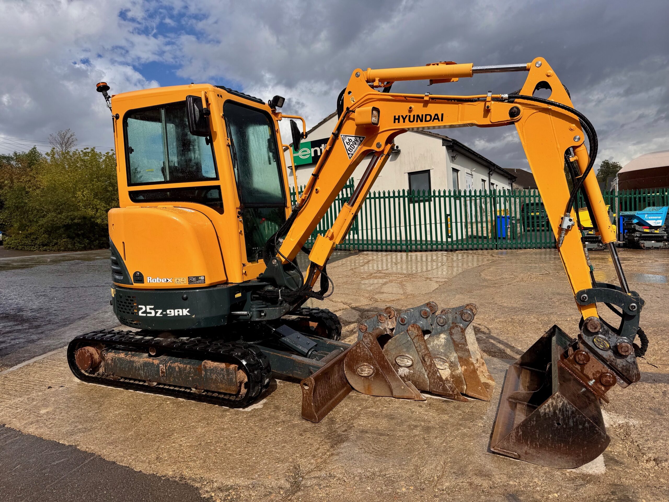 2023 Hyundai R25Z-9AK excavator, zero tail swing with hydraulic quick hitch & 4 buckets, fitted with rear camera, radio, check valves.