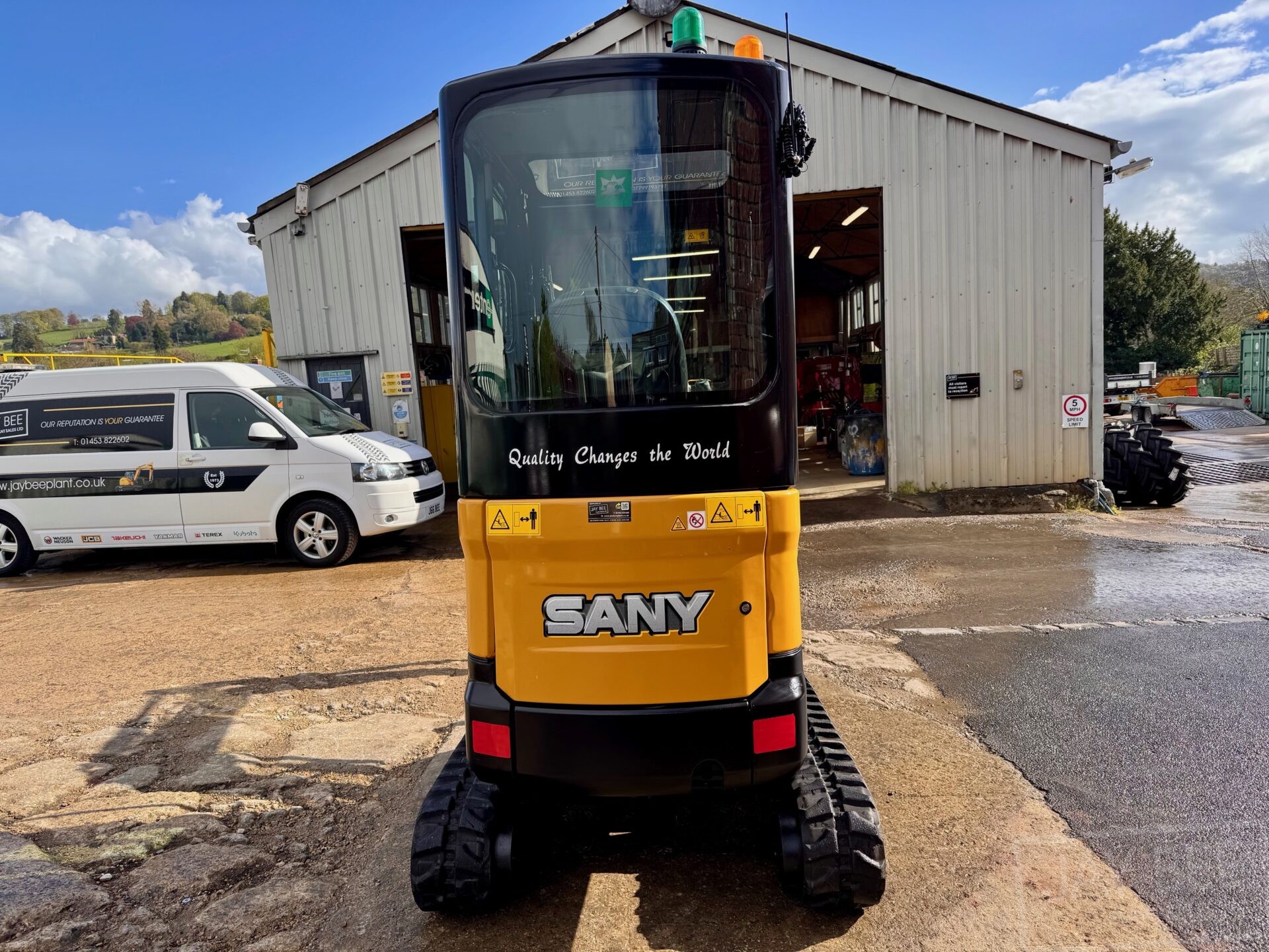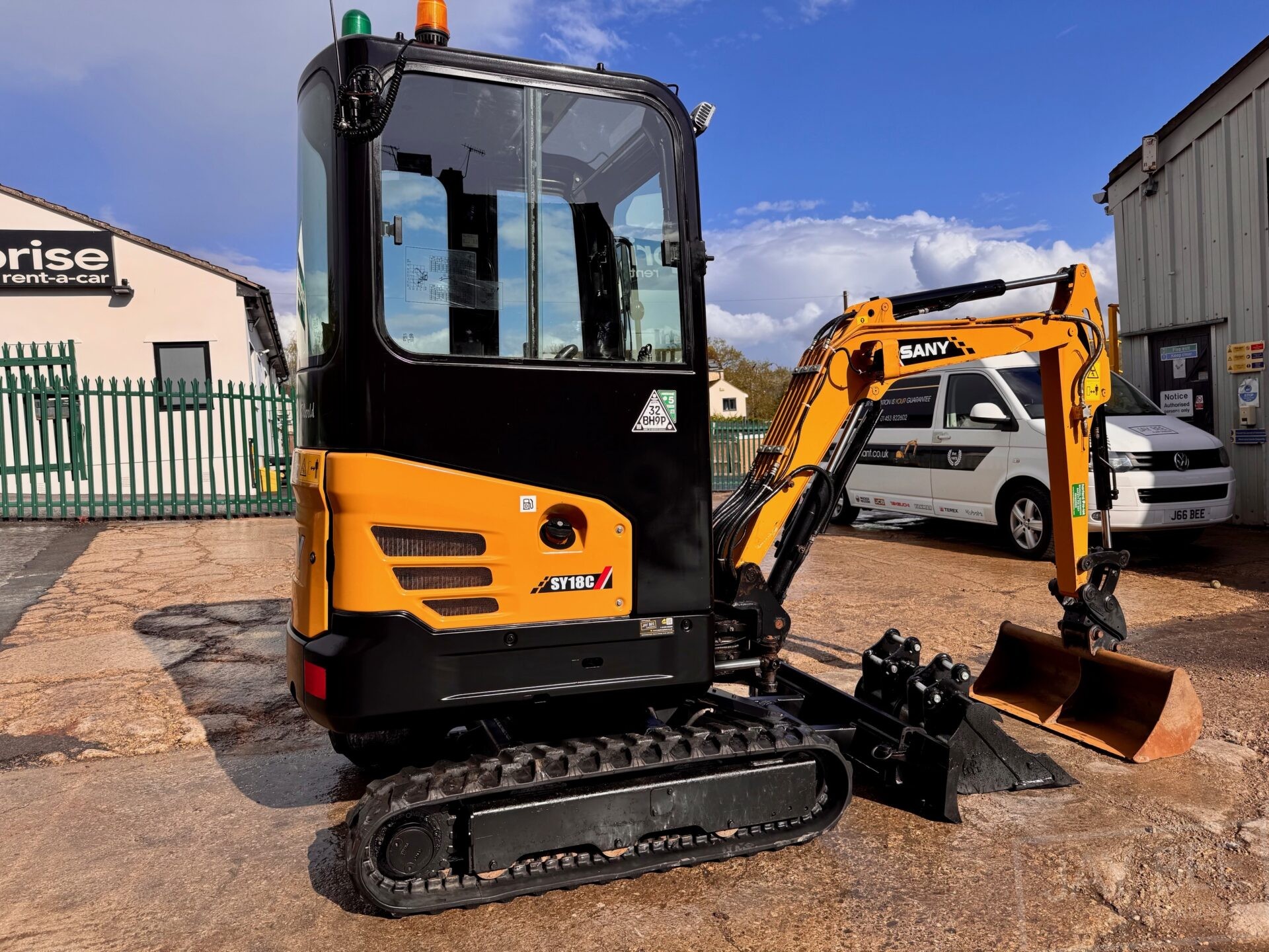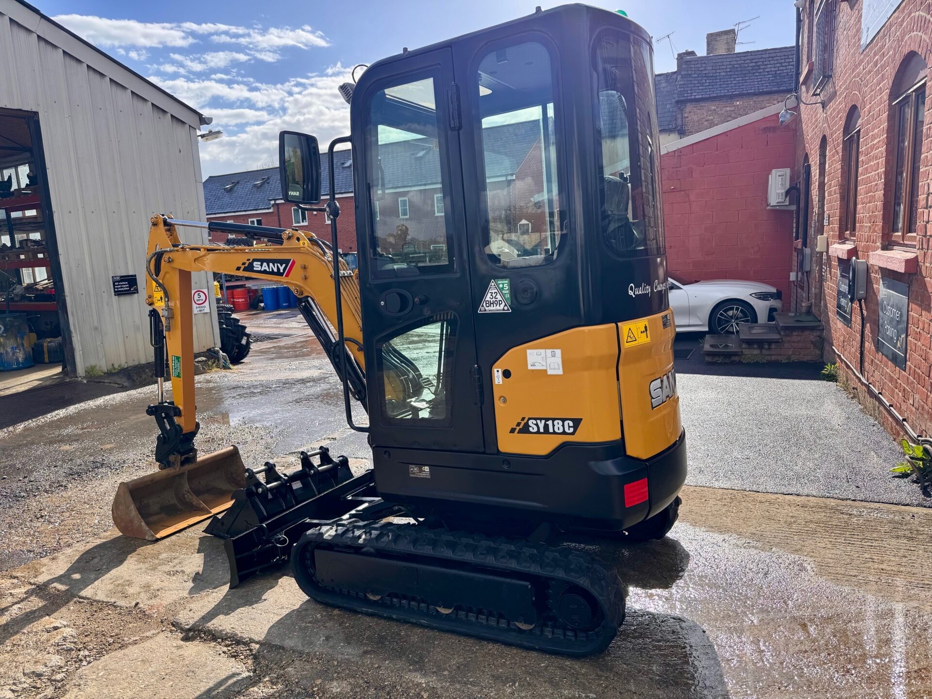 2023 Sany SY18C excavator, full cab model with heater & radio, 2 speed tracking with travel alarm, expanding undercarriage, LED lights, Beacons.