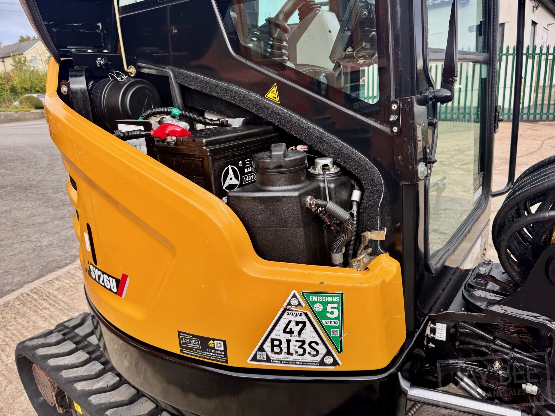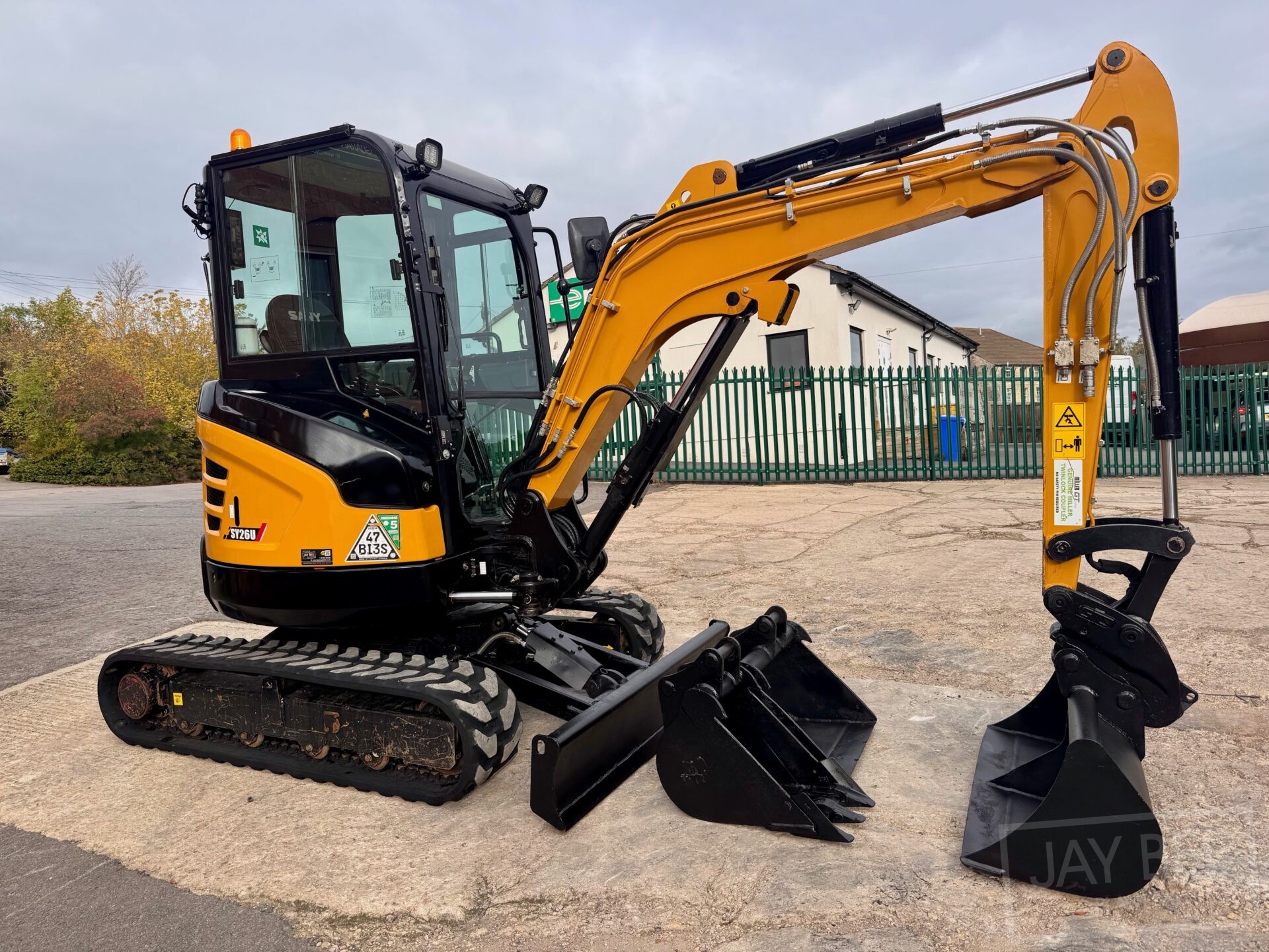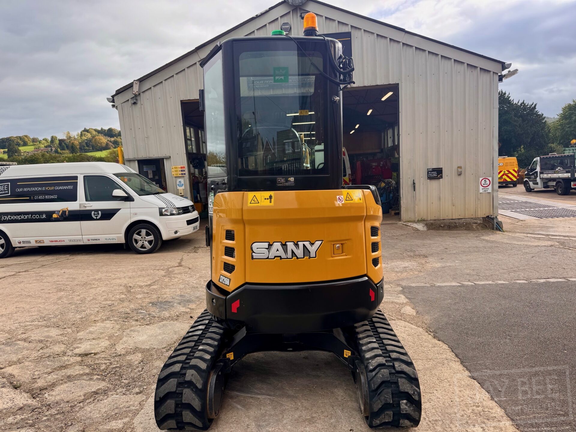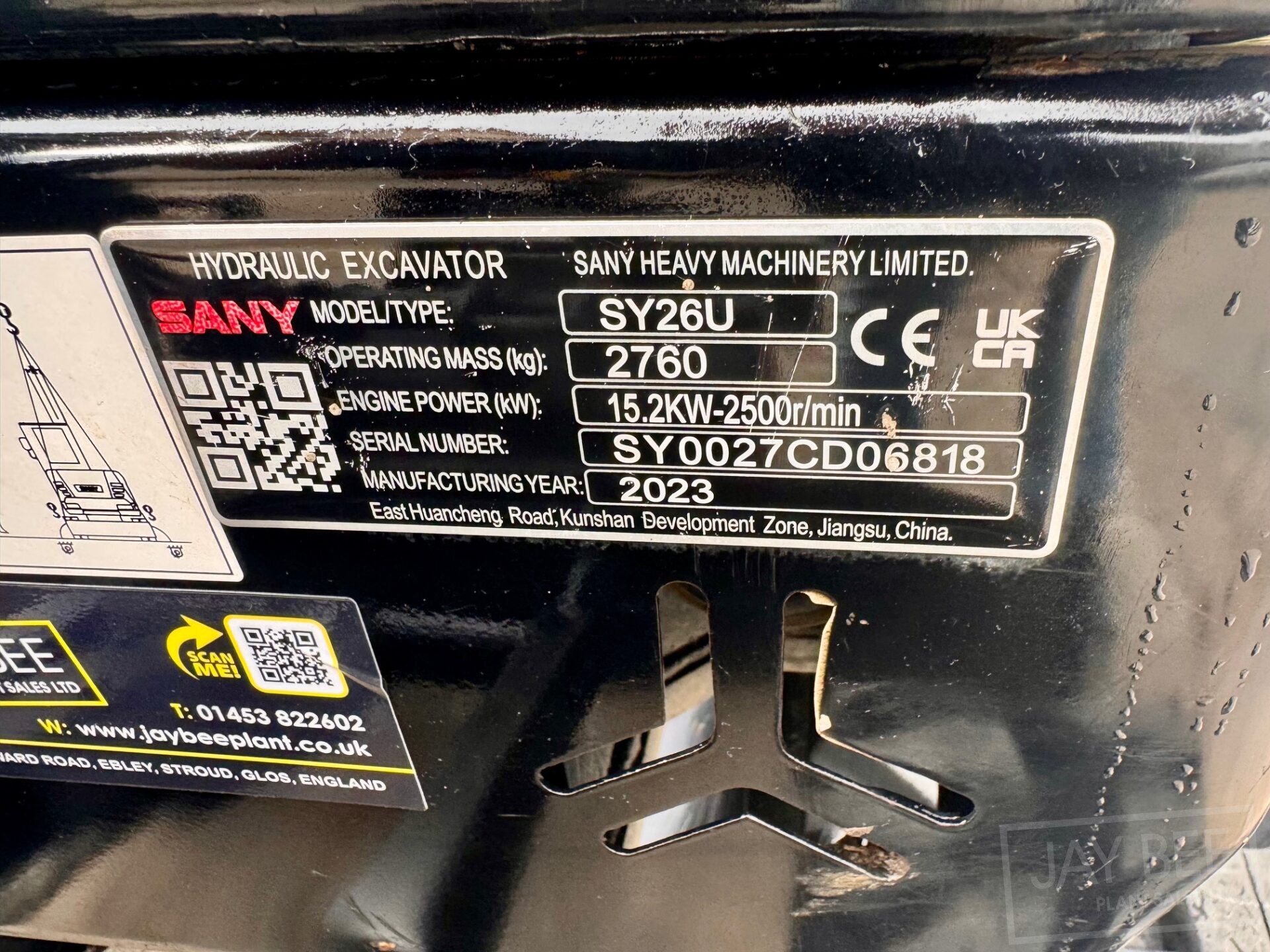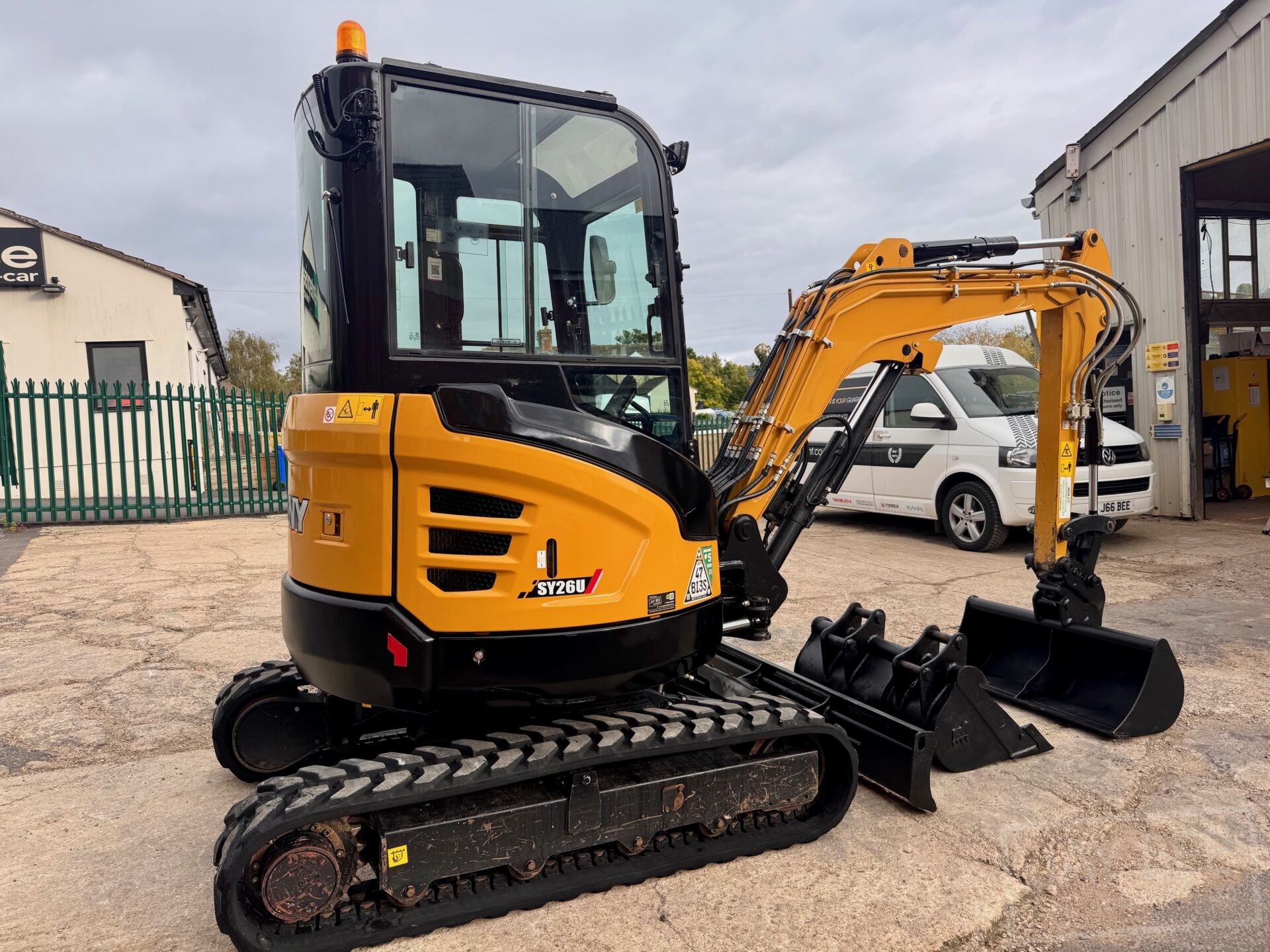2023 Sany SY26U excavator, zero tail swing with hydraulic quick hitch & 3 buckets. Piped to take all attachments including rotation.