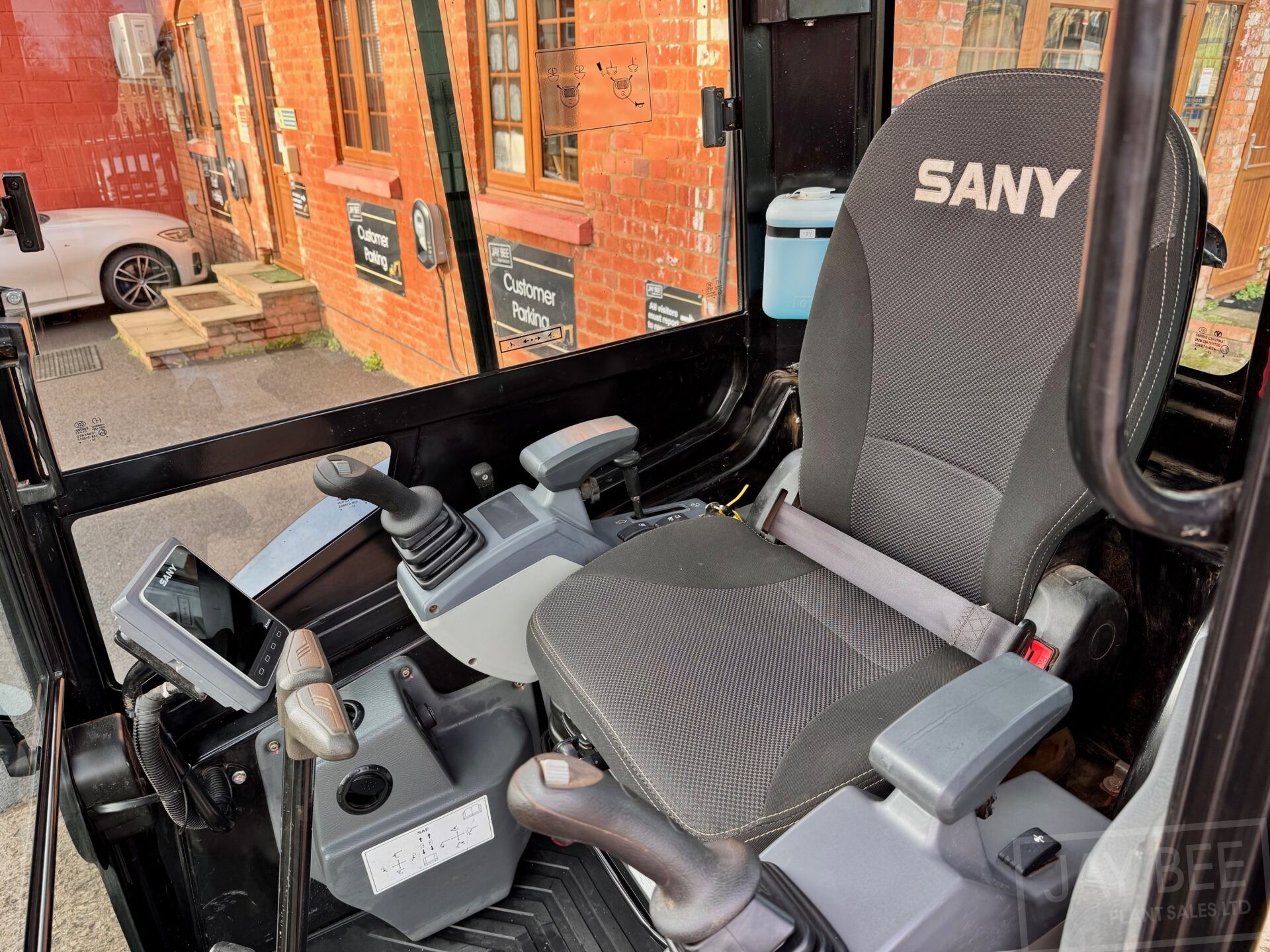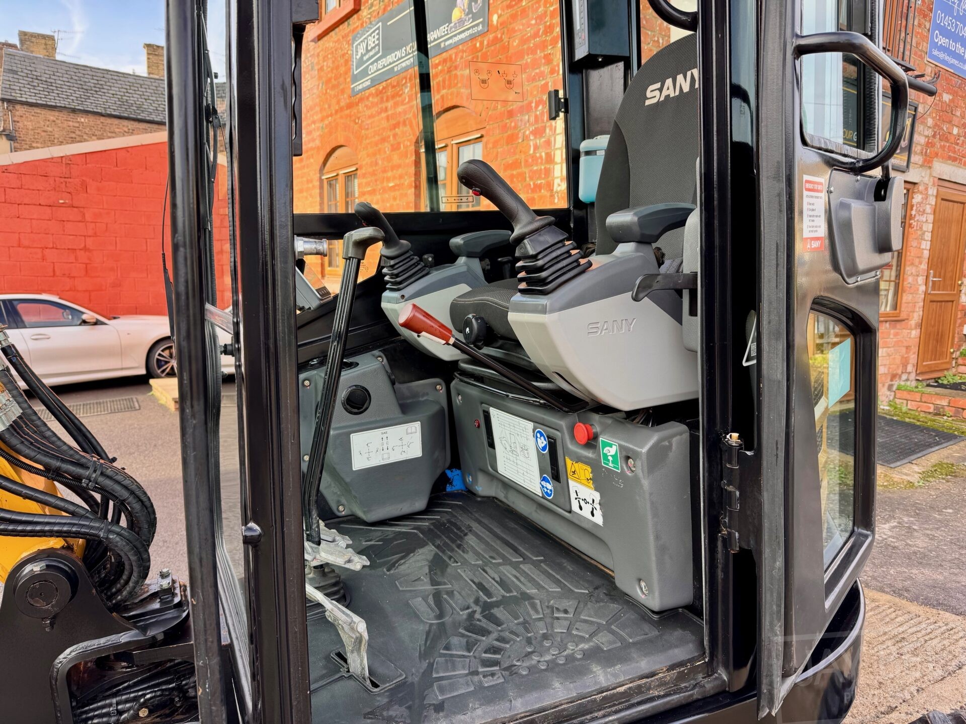 2023 Sany SY26U excavator with hydraulic quick hitch and 3 buckets, piped to take rotating grab.