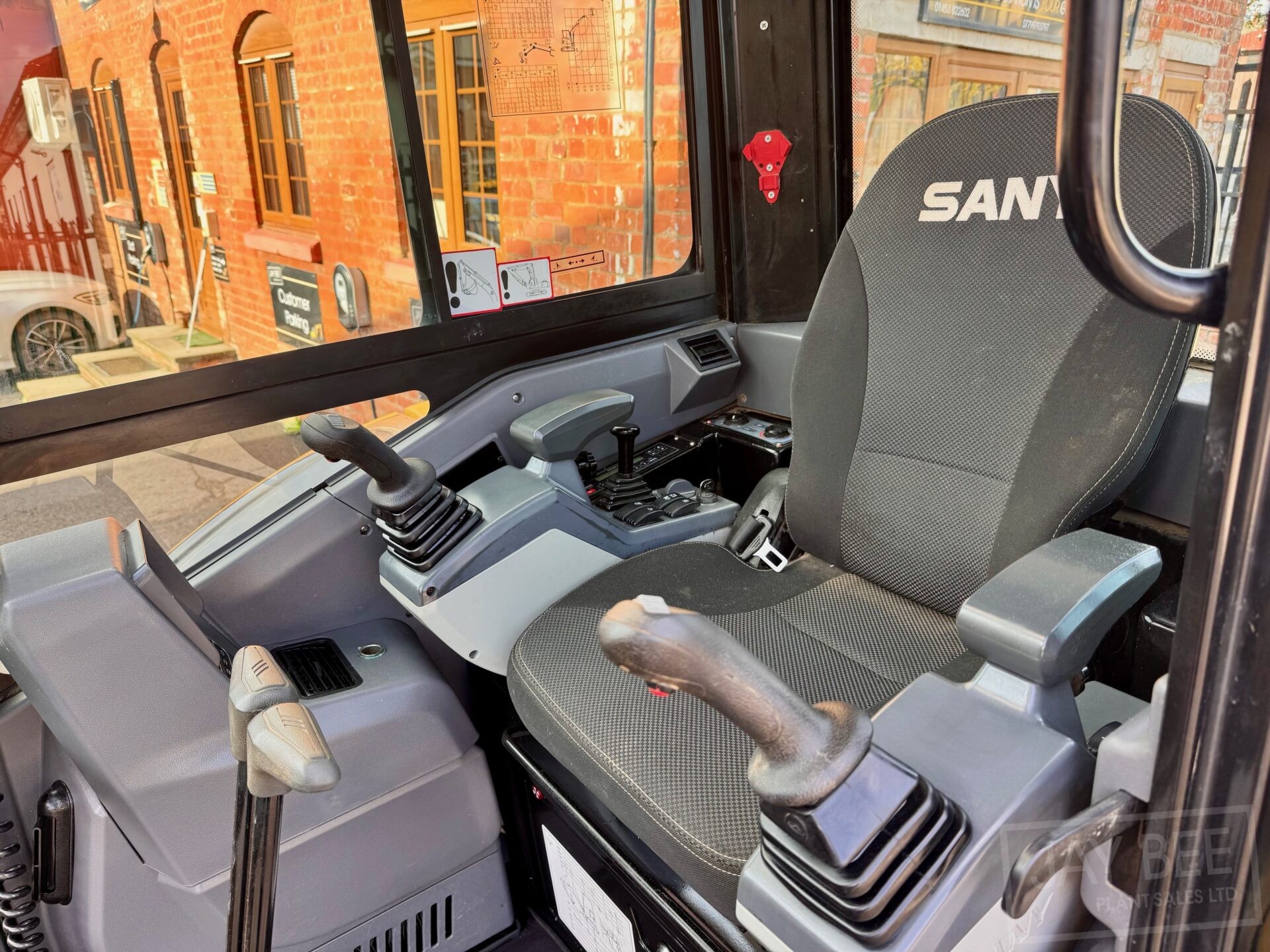 2023 Sany SY35U excavator with hydraulic hitch & 3 buckets, zero tail swing and piped to take a rotating grab, air conditioned cab with heater & radio.